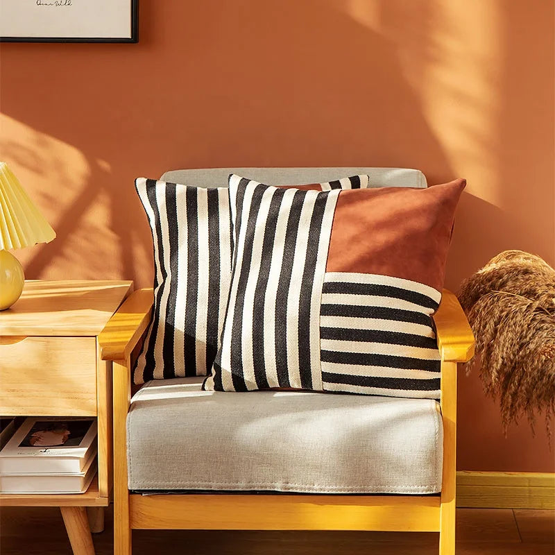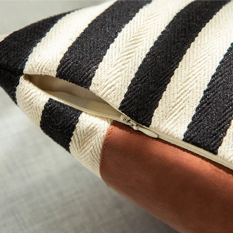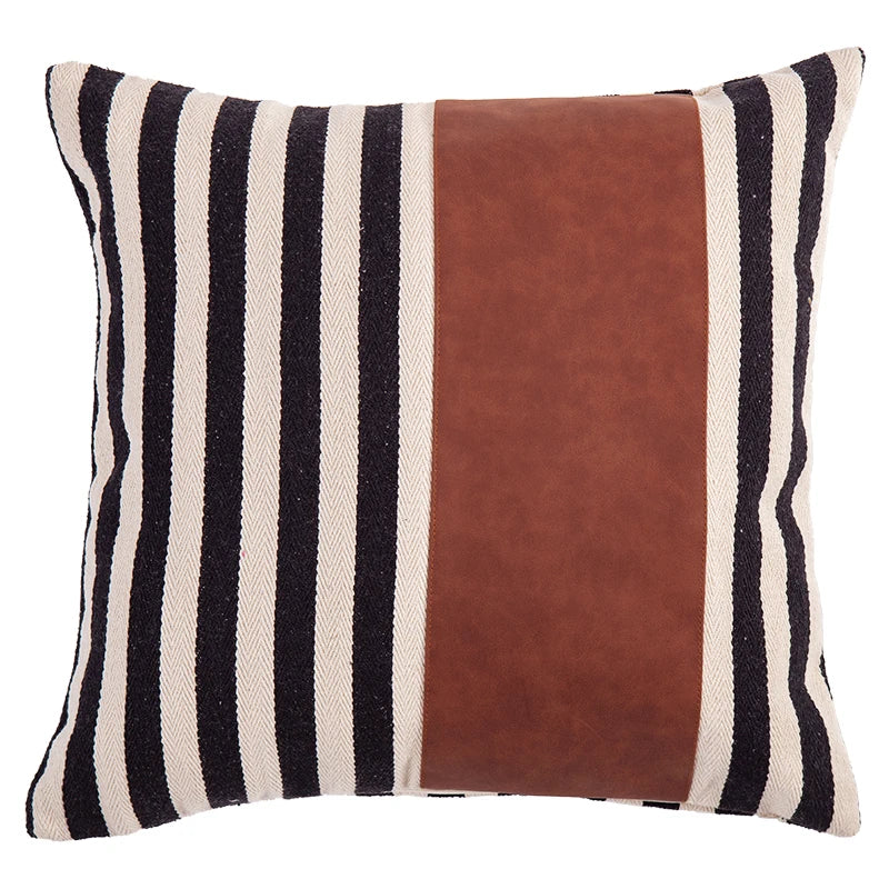 غطاء وسادة من الجلد الصناعي المخطط باللون الأسود من DecorBites™ مقاس 45×45 سم لديكور المنزل