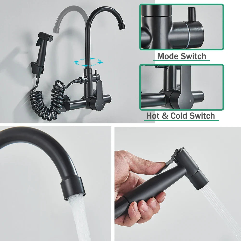 قم بترقية ديكور مطبخك باستخدام صنبور المطبخ الحائطي Decorbites Black SUS 304 المزود ببيديه قابل للتمديد، حيث يلتقي الأسلوب بالوظيفة في مكان مثالي