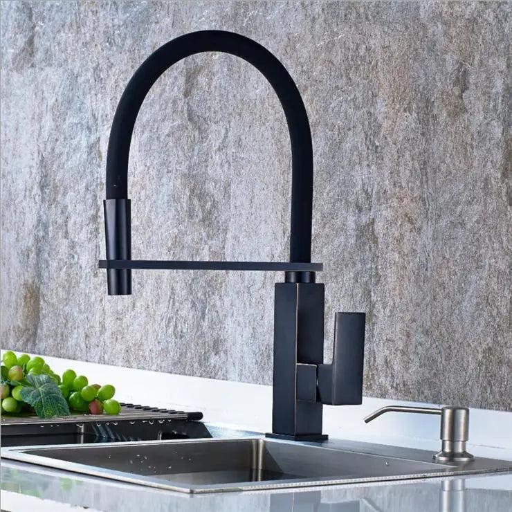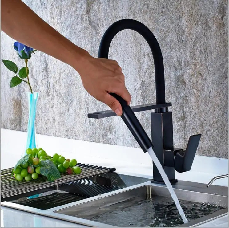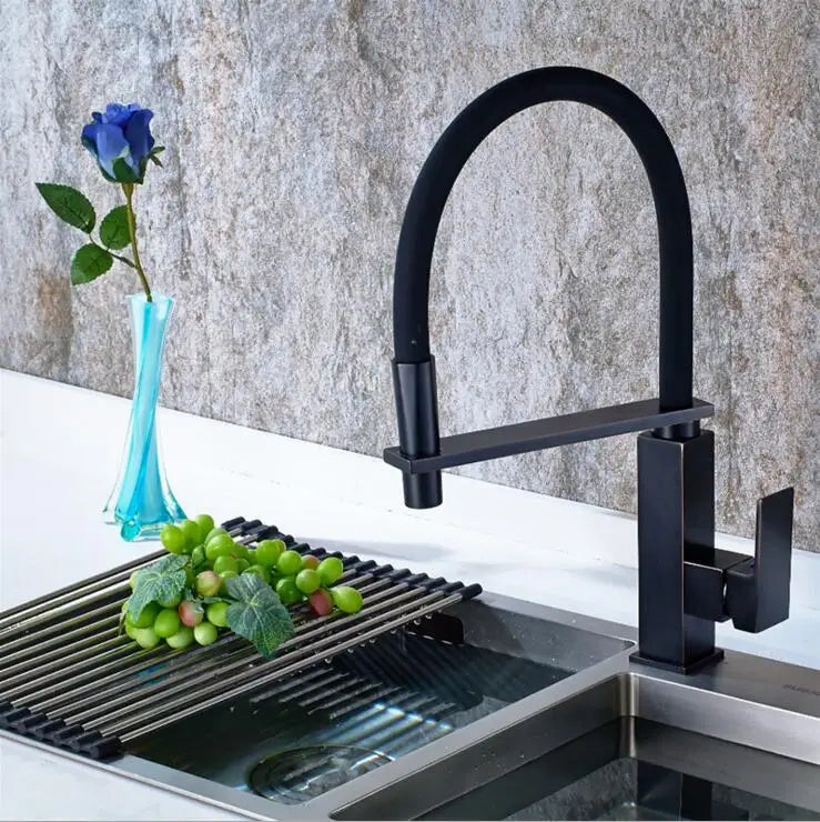 صنبور مطبخ دوار أسود من DecorBites™، صنبور خلاط فاخر مثبت على السطح