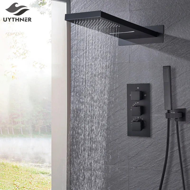 صنبور دش مطري منظم للحرارة باللون الأسود من DecorBites™ مع دش يدوي