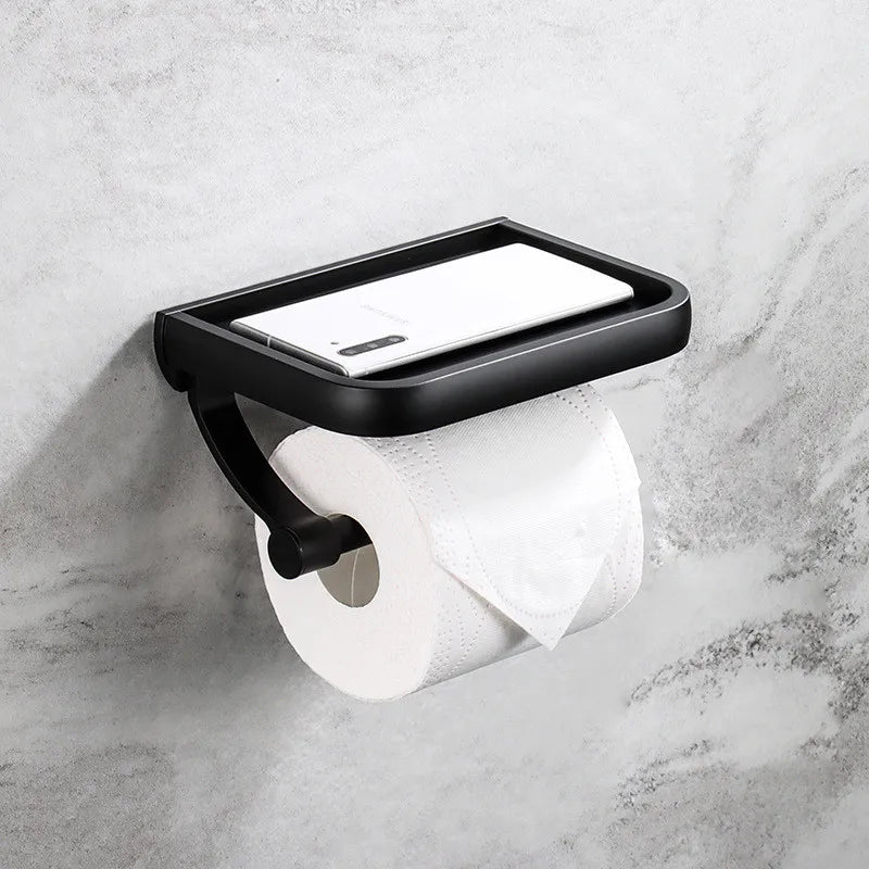 حامل مناديل ورقية أسود من DecorBites™ مع حامل هاتف - رف ورق التواليت وصندوق تخزين