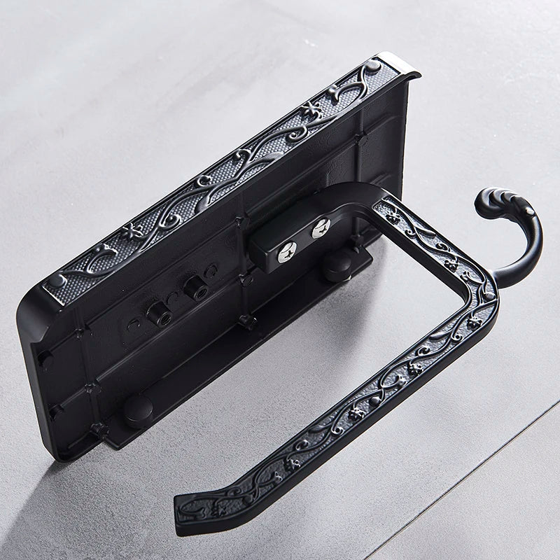 نقدم لكم حامل ورق التواليت الأسود من ديكوربايتس مع حامل للهاتف، إضافة أنيقة وعصرية لديكور حمامكم. مصنوع من سبائك ألومنيوم عالية الجودة، يتميز هذا الحامل بمتانته وقدرته على التحمل.