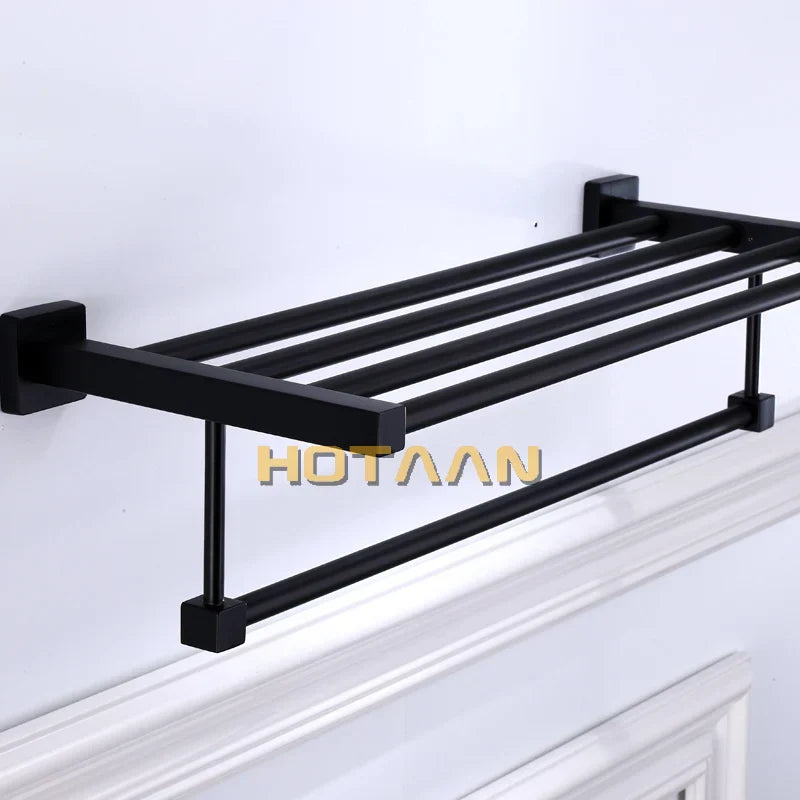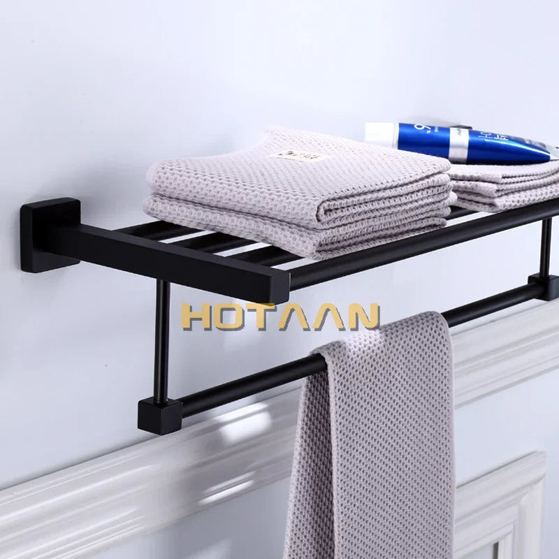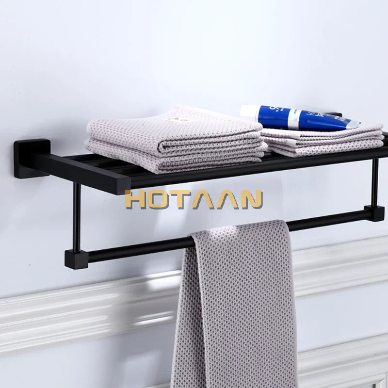 رف مناشف أسود من DecorBites™: إكسسوارات حمام من الألومنيوم مثبتة على الحائط