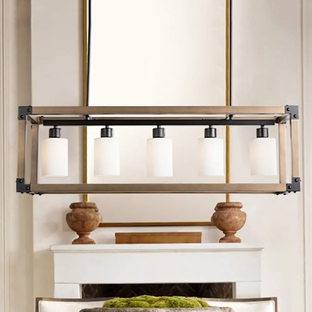 ديكوربايتس™ مصباح معلق تقليدي أسود لغرفة الطعام مع ظلال زجاجية بلون الحليب - مصباح معلق بخمسة مصابيح
