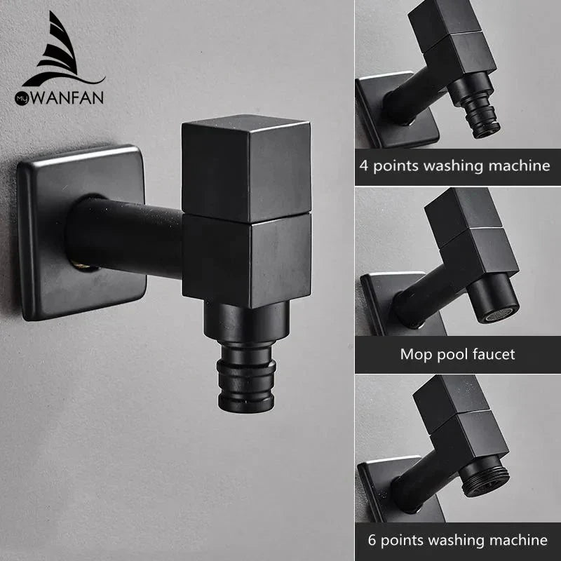 صنبور غسالة ملابس أسود مثبت على الحائط من DecorBites™ - صنبور مياه للحديقة والحمام الخارجي