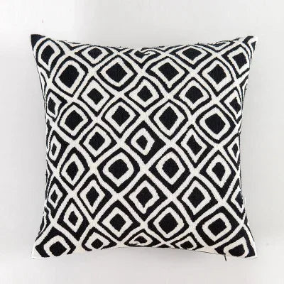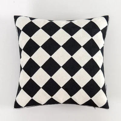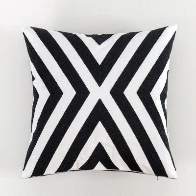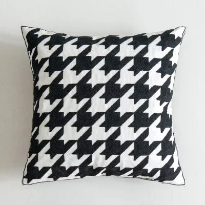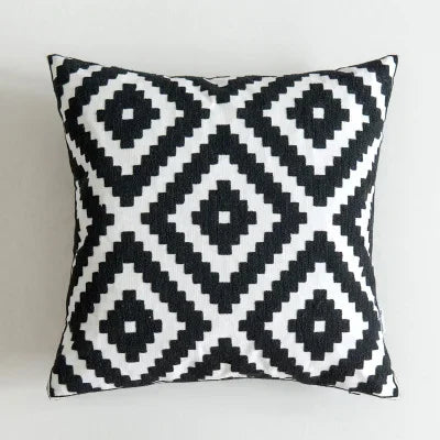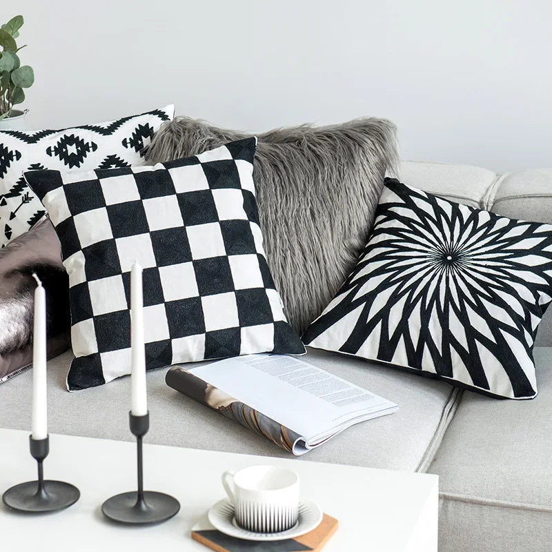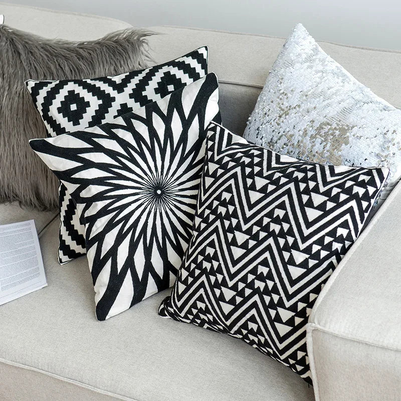 غطاء وسادة مطرز باللونين الأسود والأبيض من DecorBites™ مقاس 45×45 سم، أريكة وسرير وكرسي، ديكور منزلي