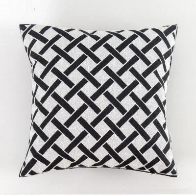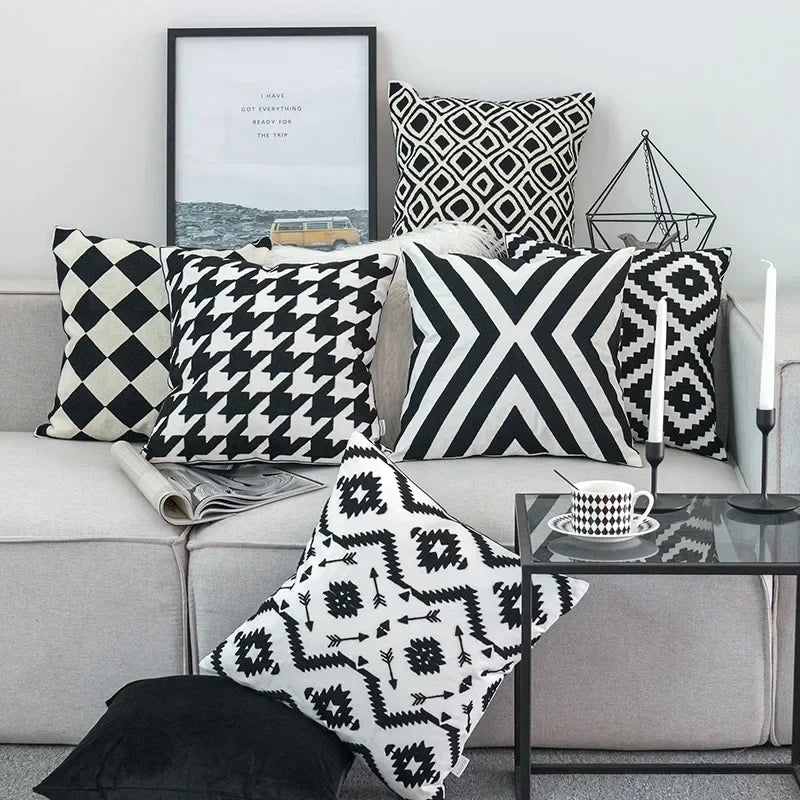 مصنوع من مواد عالية الجودة، يتميز غطاء الوسادة هذا بنقش هندسي خالد يضفي لمسة من الأناقة على أي غرفة. يتناسب تصميمه باللونين الأبيض والأسود مع مختلف أنماط ديكور المنزل، مما يجعله خيارًا متعدد الاستخدامات لمساحتك.