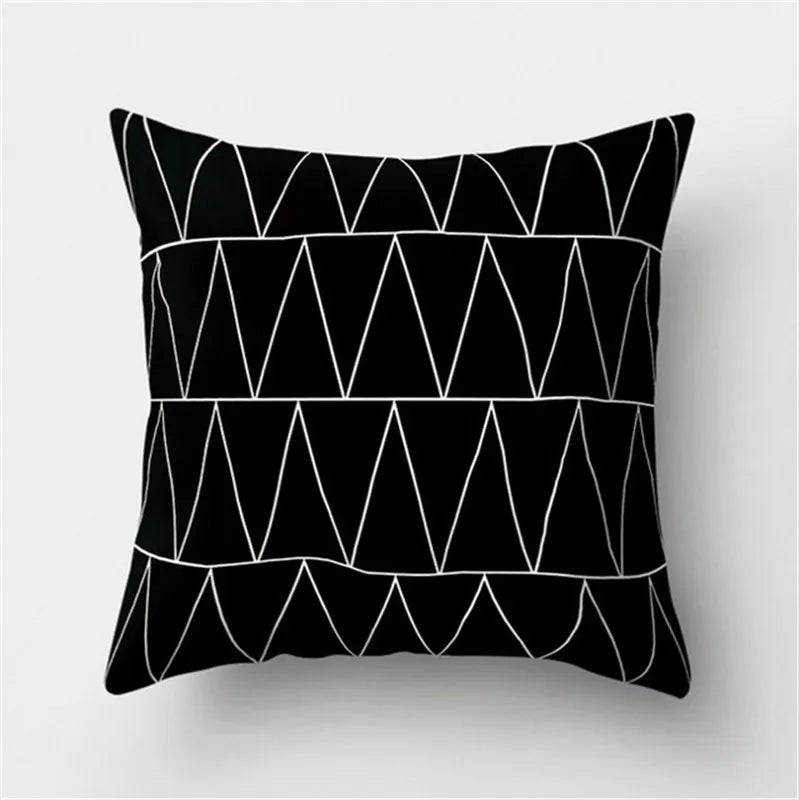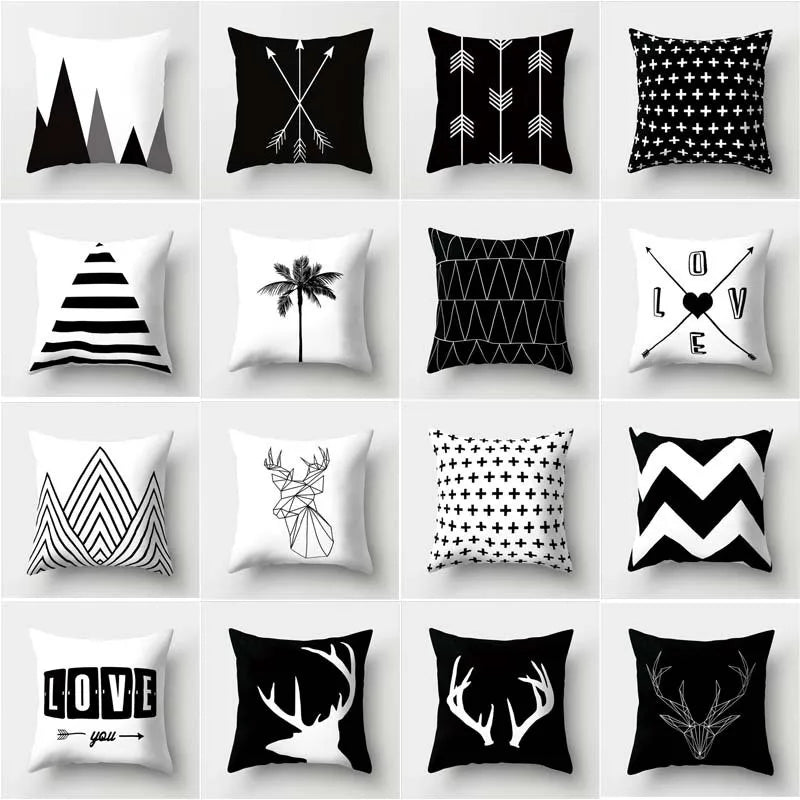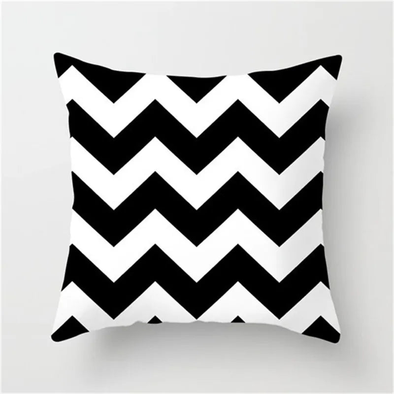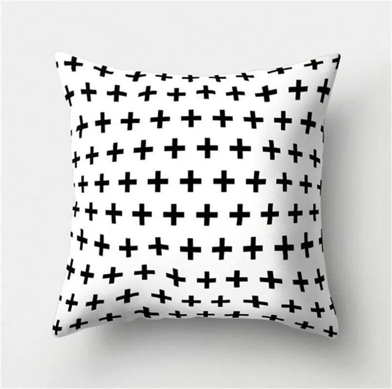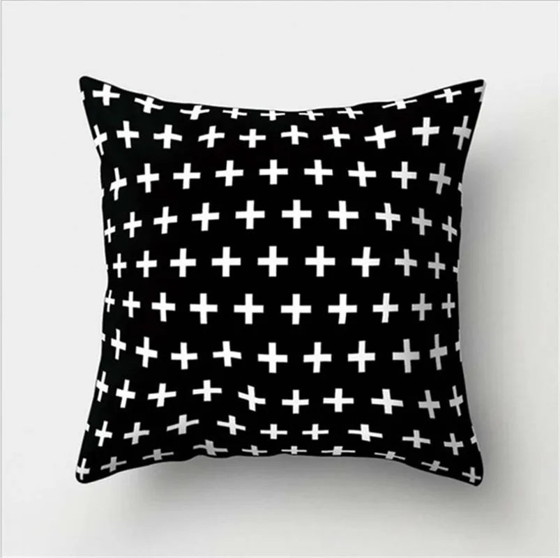 غطاء وسادة DecorBites™ أسود وأبيض مزخرف 45*45 سم، وسادة أريكة أنيقة لغرفة المعيشة