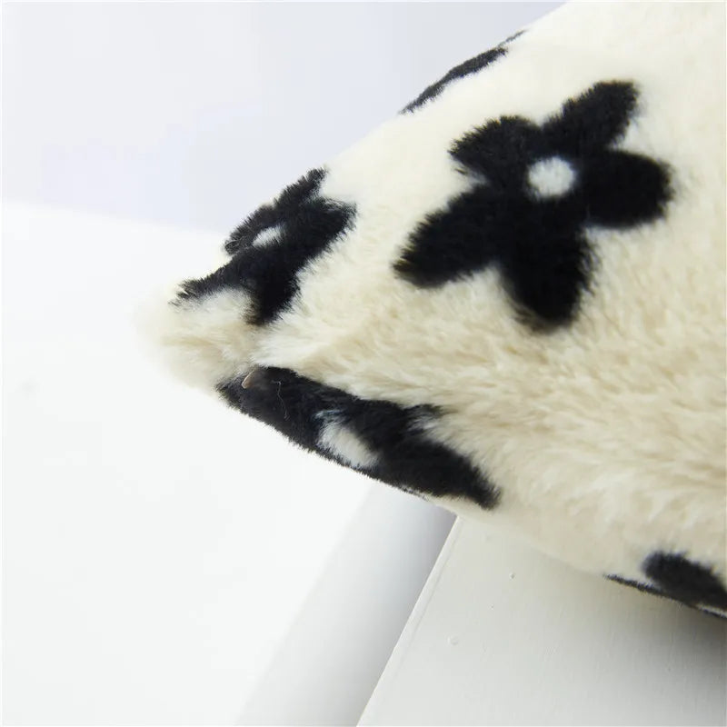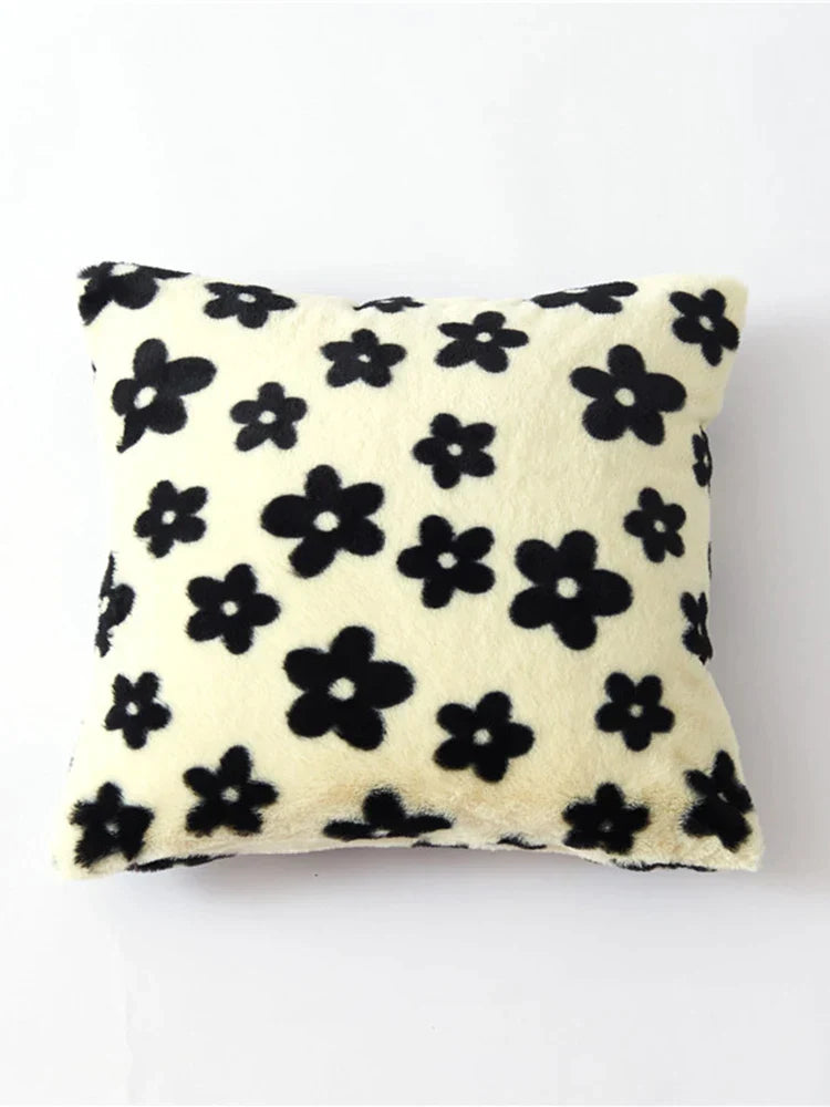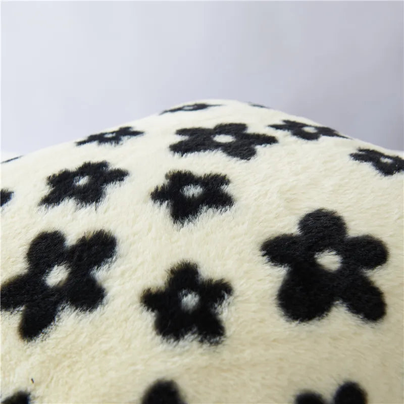 غطاء وسادة من القطيفة بنقشة زهور البقر باللونين الأبيض والأسود من DecorBites™ مقاس 50×50 - طباعة على الوجهين