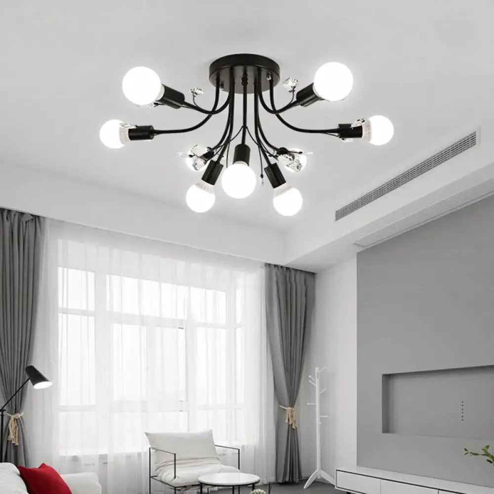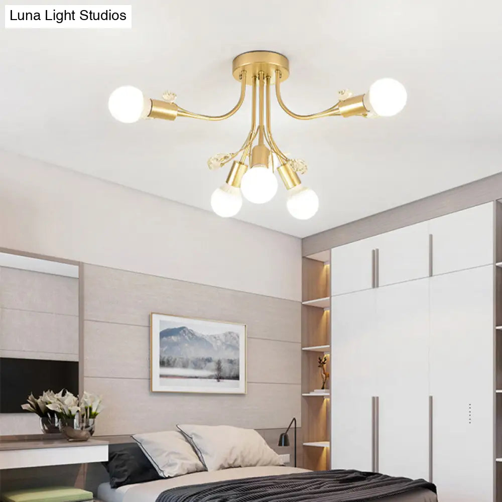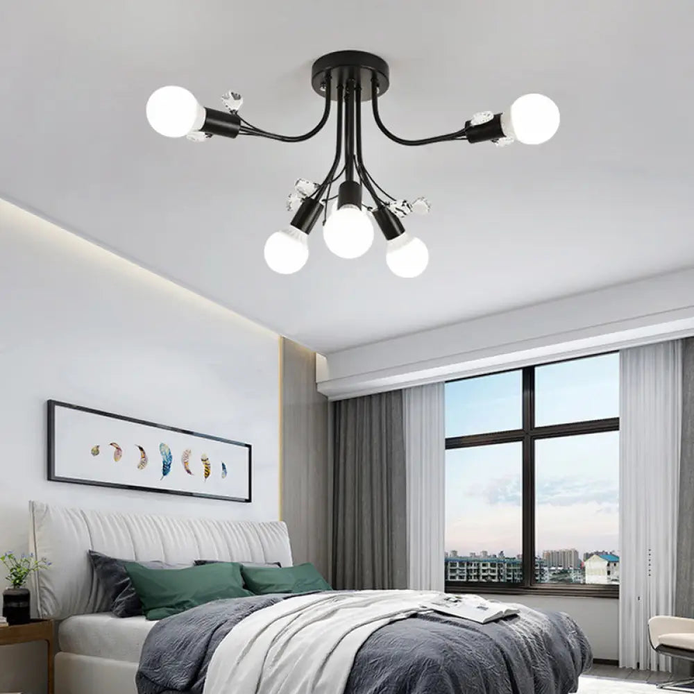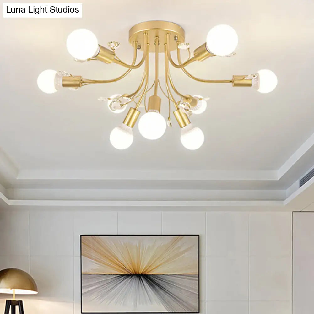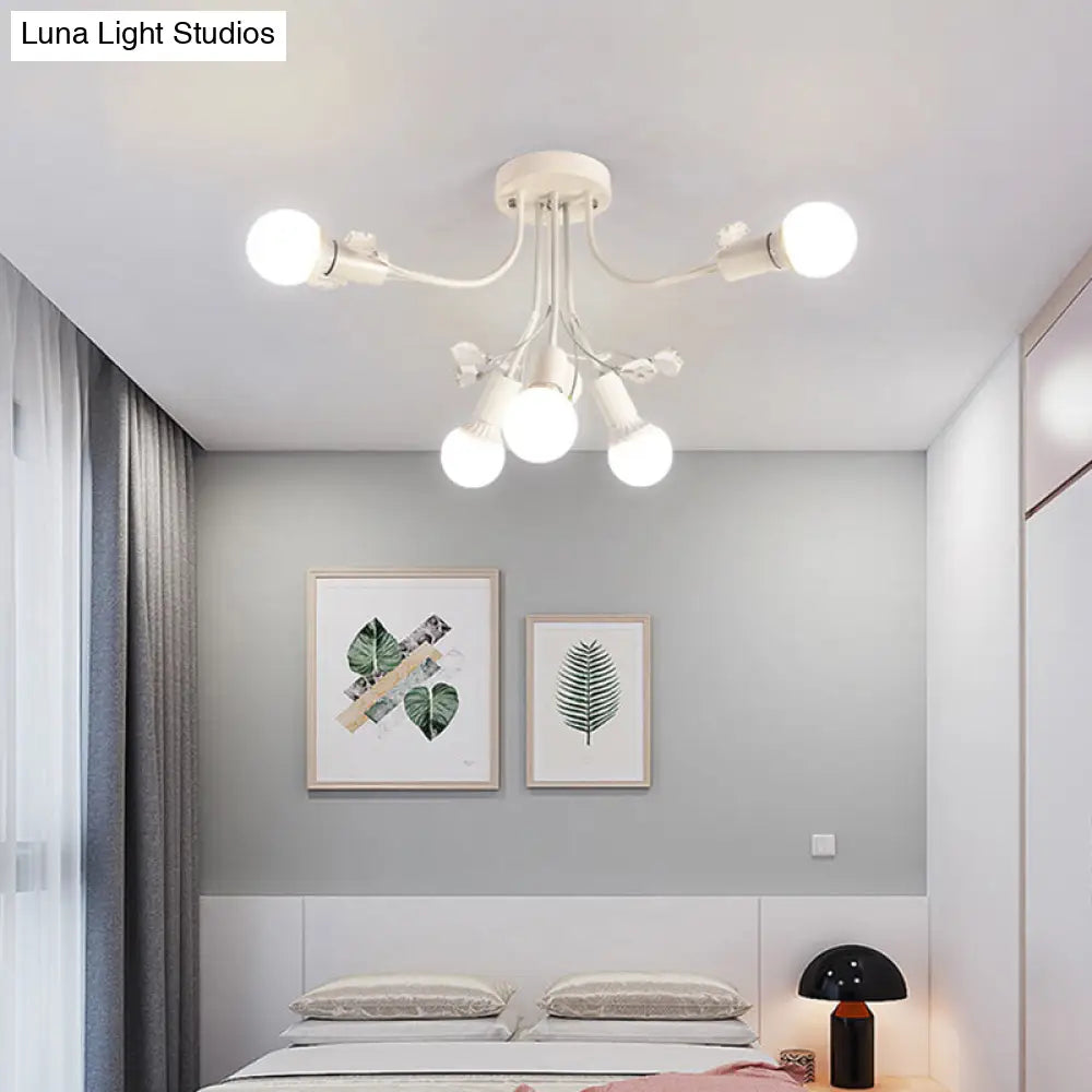 ديكوربايتس™ مصباح شبه مدمج بأذرع معدنية منحنية باللون الأسود/الأبيض/الذهبي - طراز نورديك - 6/9 مصابيح - غرفة نوم - مثبت في السقف