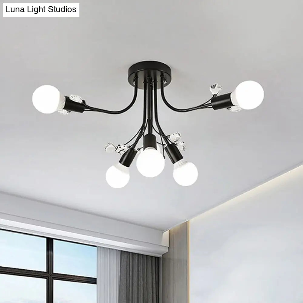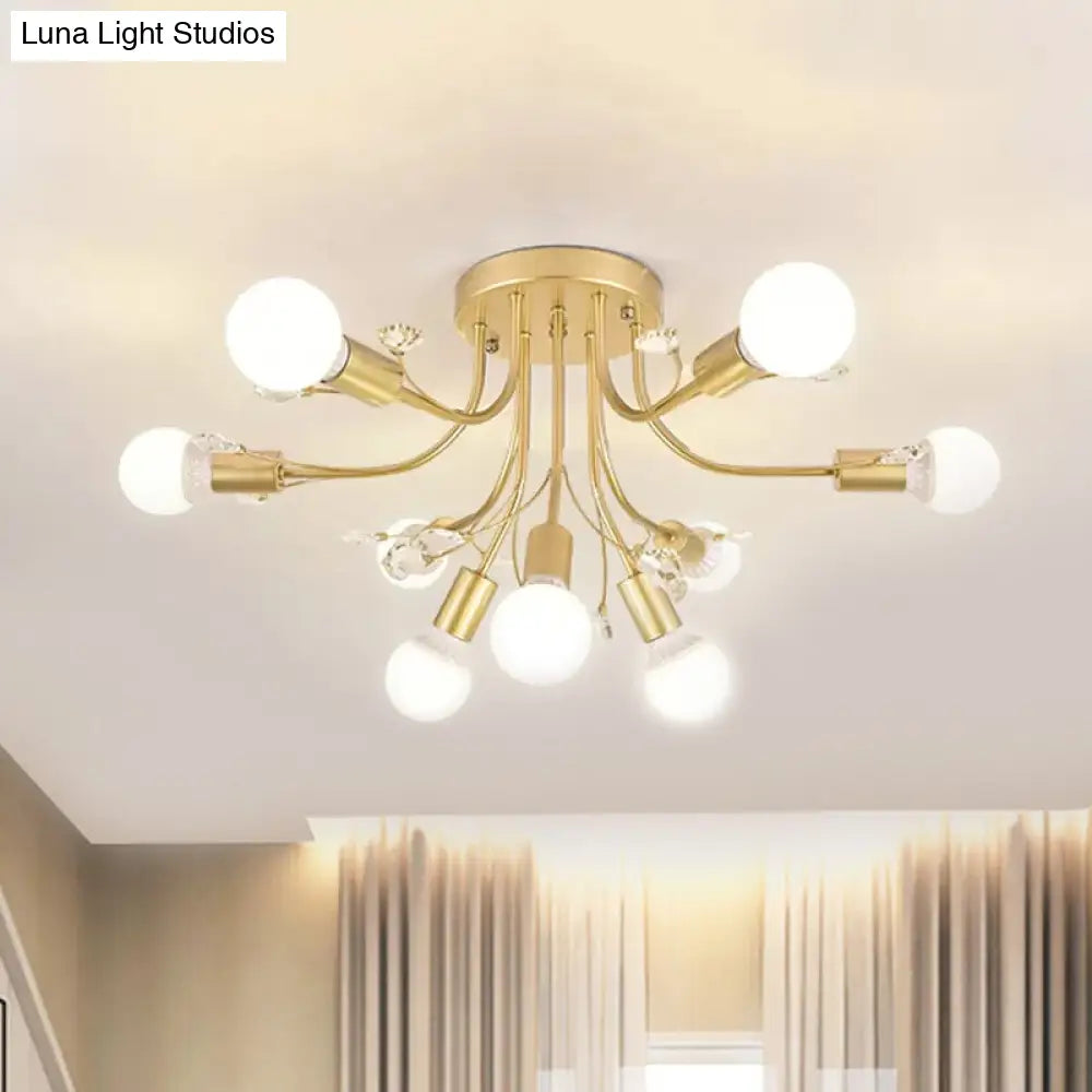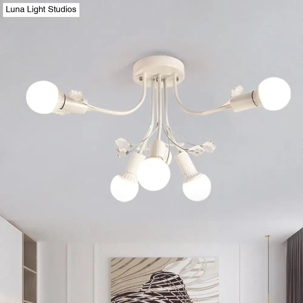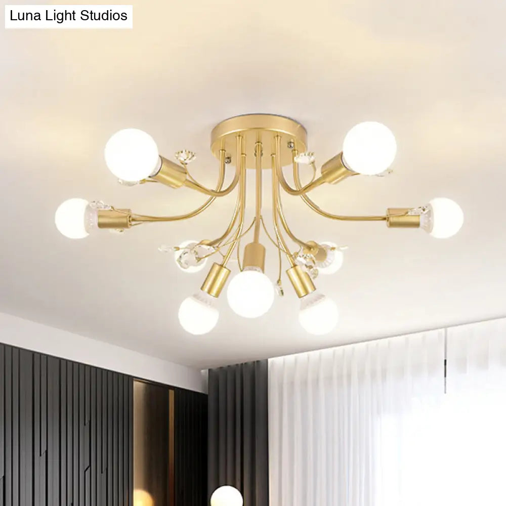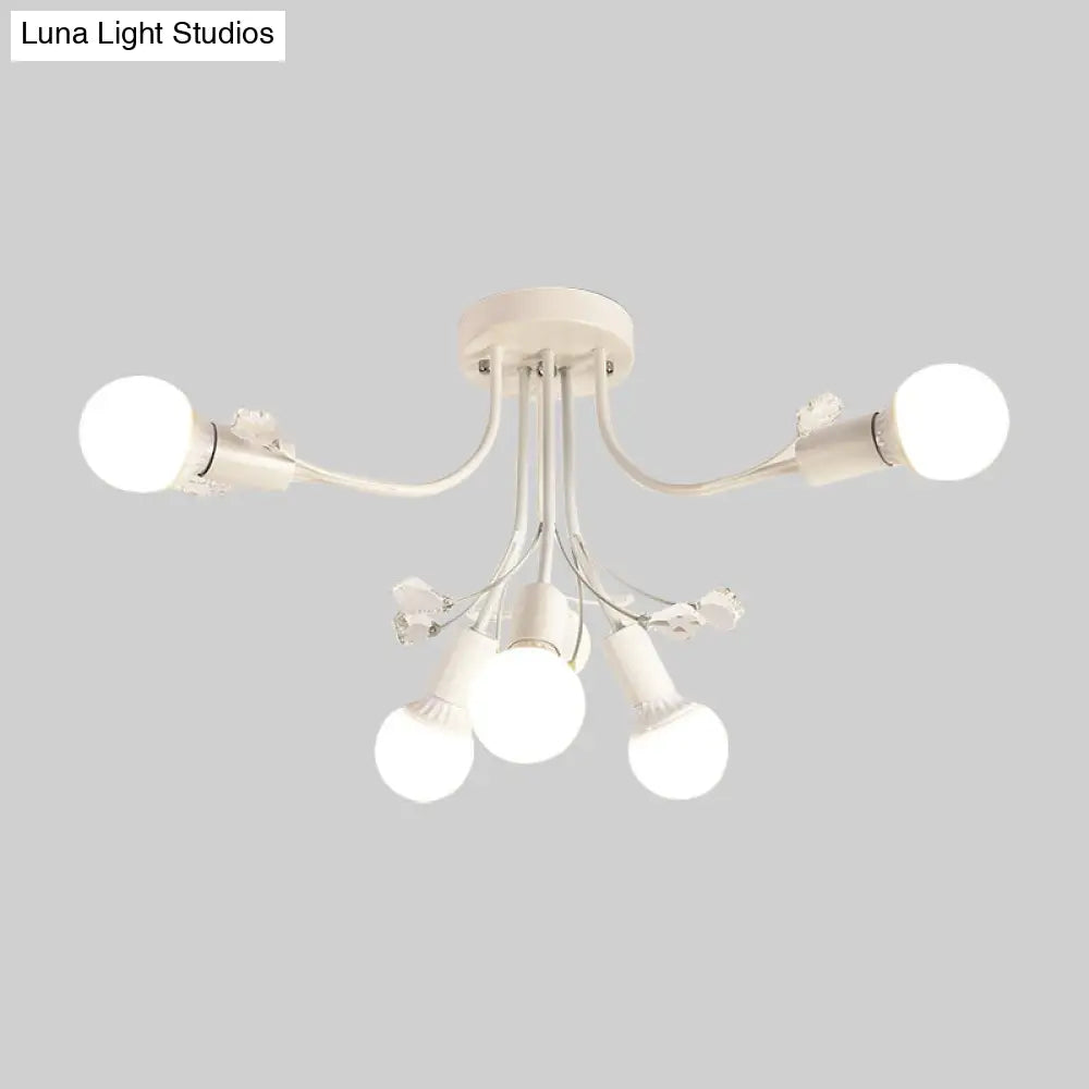 ديكوربايتس™ مصباح شبه مدمج بأذرع معدنية منحنية باللون الأسود/الأبيض/الذهبي - طراز نورديك - 6/9 مصابيح - غرفة نوم - مثبت في السقف