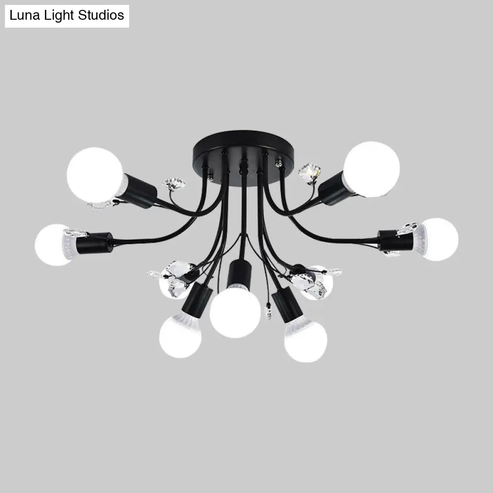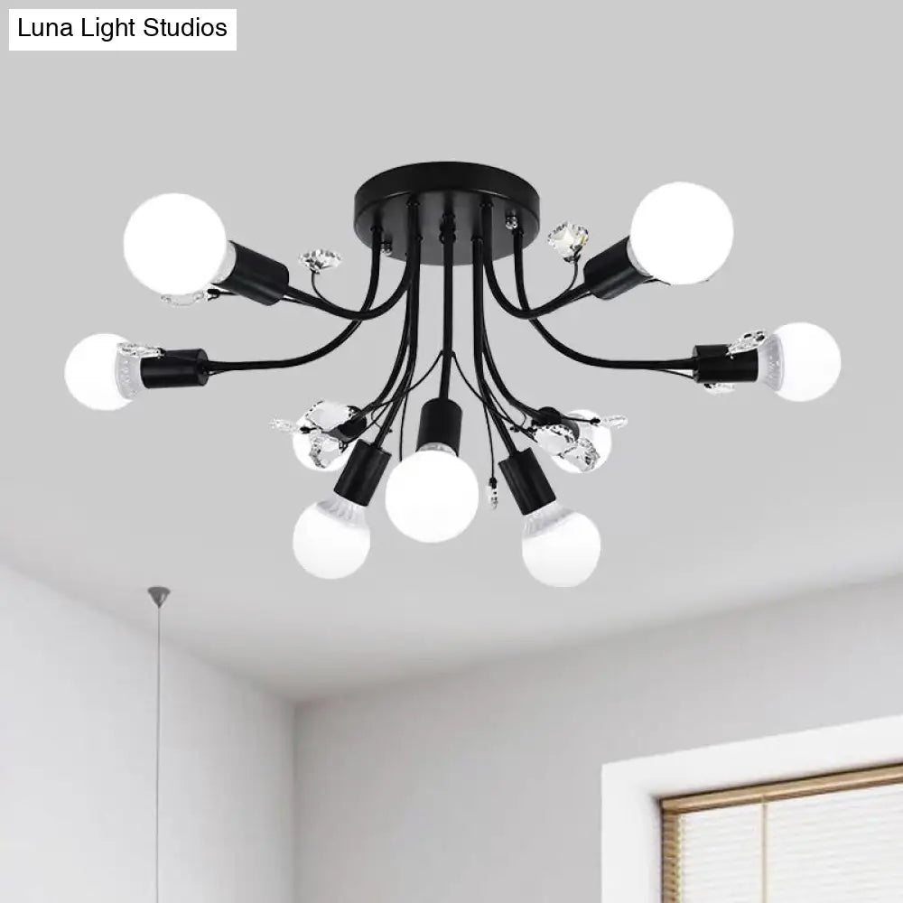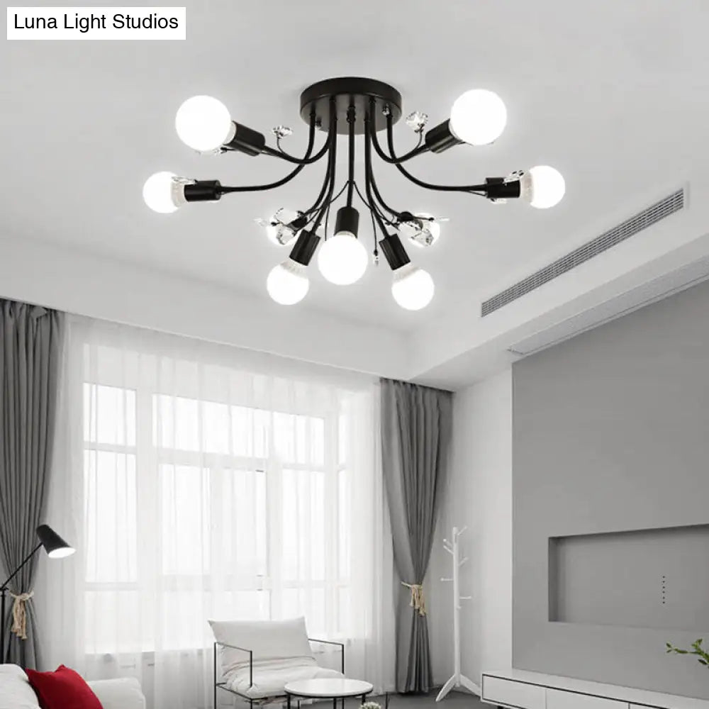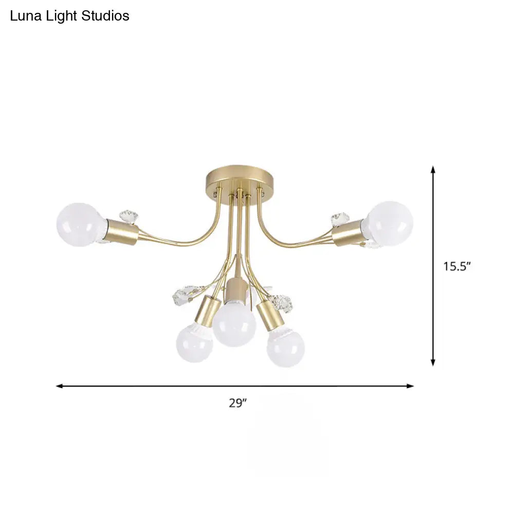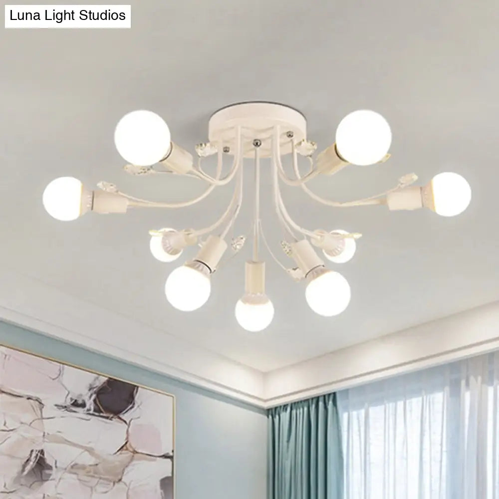 ديكوربايتس™ مصباح شبه مدمج بأذرع معدنية منحنية باللون الأسود/الأبيض/الذهبي - طراز نورديك - 6/9 مصابيح - غرفة نوم - مثبت في السقف