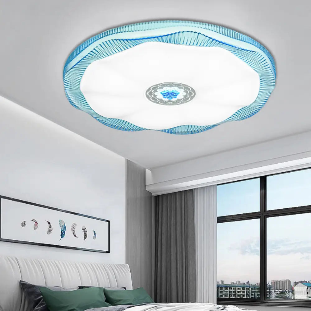 ديكوربايتس™ مصباح سقف بلومينج مدمج لغرفة النوم، غطاء أكريليك عصري، أبيض/أزرق/ذهبي، دافئ/أبيض - عرض 16 بوصة/19.5 بوصة
