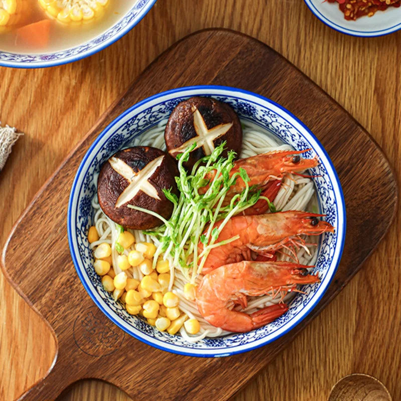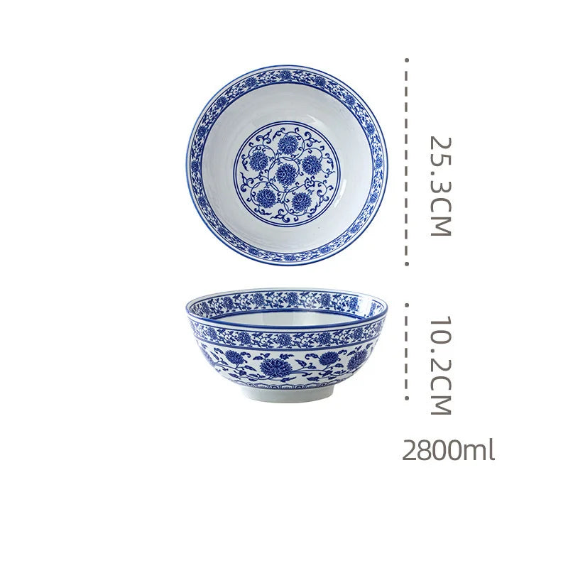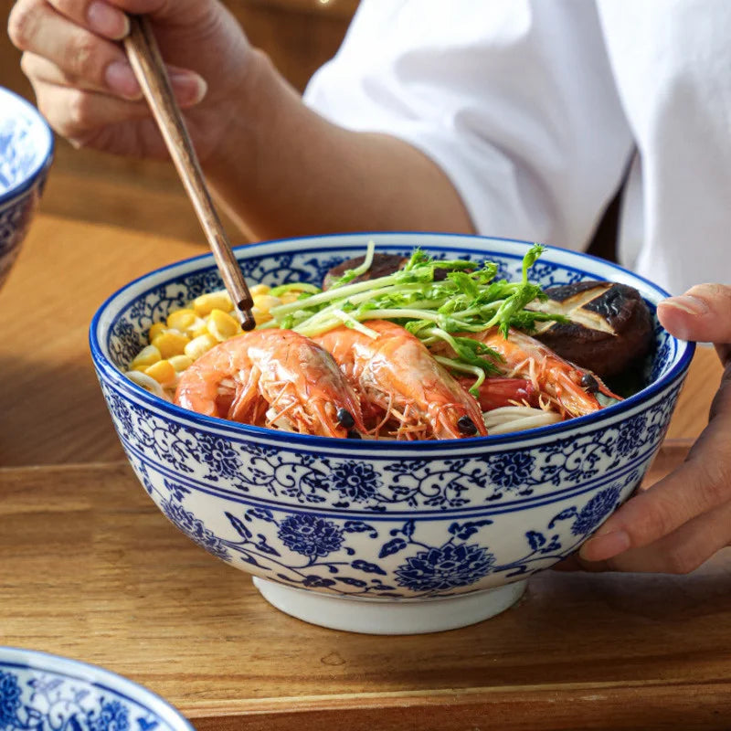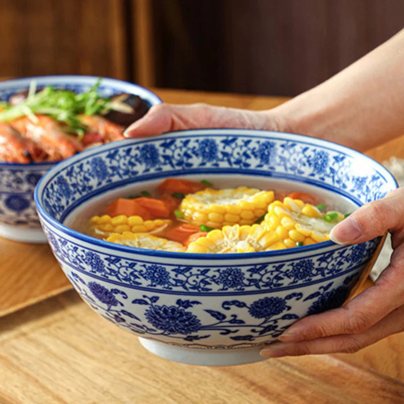 وعاء حساء المعكرونة الخزفي باللونين الأزرق والأبيض من DecorBites™