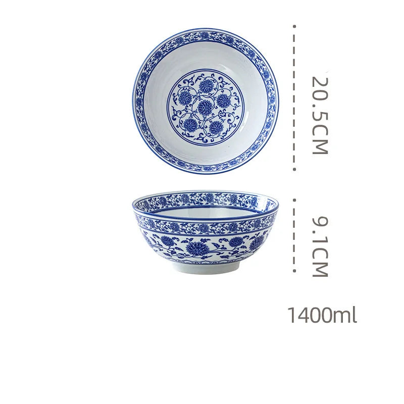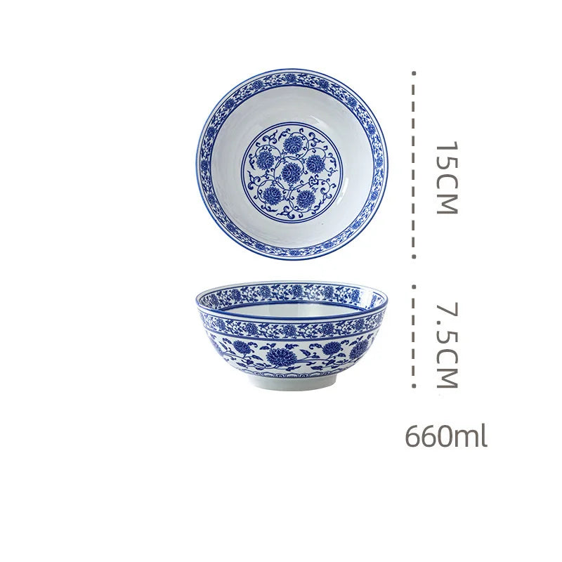 استمتع بأناقة وسحر وعاء نودلز الحساء الخزفي الأزرق والأبيض من ديكوربايتس. يتميز هذا الوعاء الرائع بنقشة زهور خالدة تُضفي لمسة من الرقي على تجربة تناول طعامك.