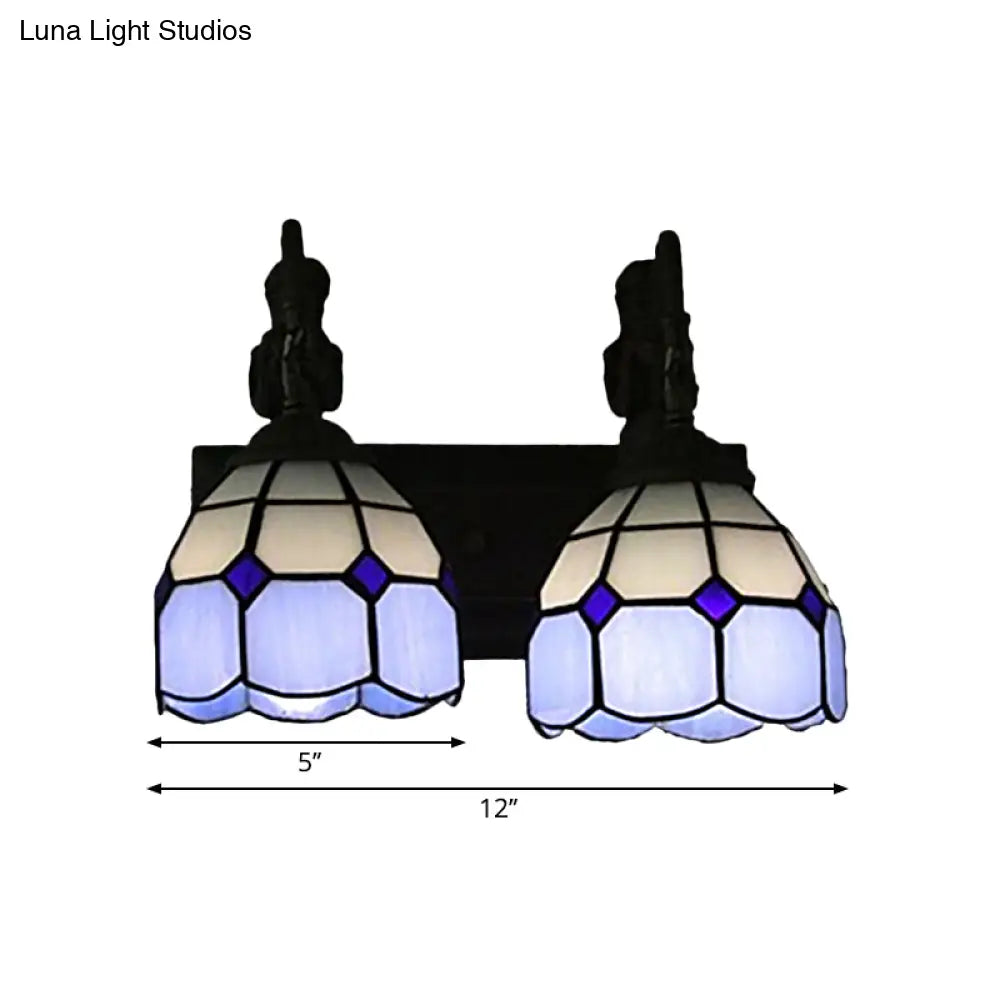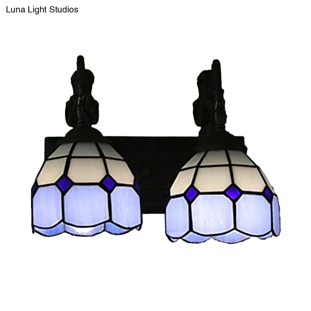 ديكوربايتس™ - شمعدان حائط من الزجاج الملون باللون الأزرق الباروكي مع قبة شبكية ومصباحين