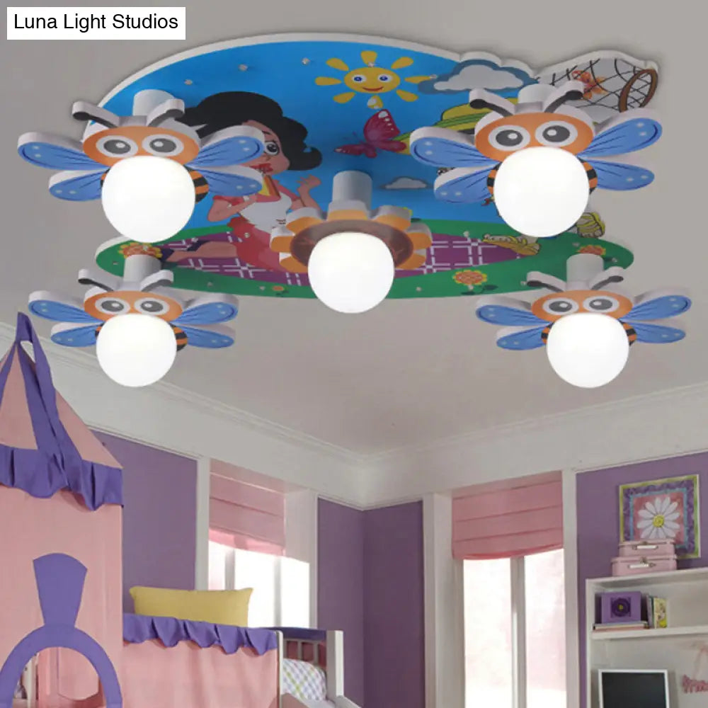 ديكوربايتس™ مصباح سقفي أزرق النحلة - مصباح سقفي بخمسة رؤوس بتصميم كرتوني لغرفة التمريض