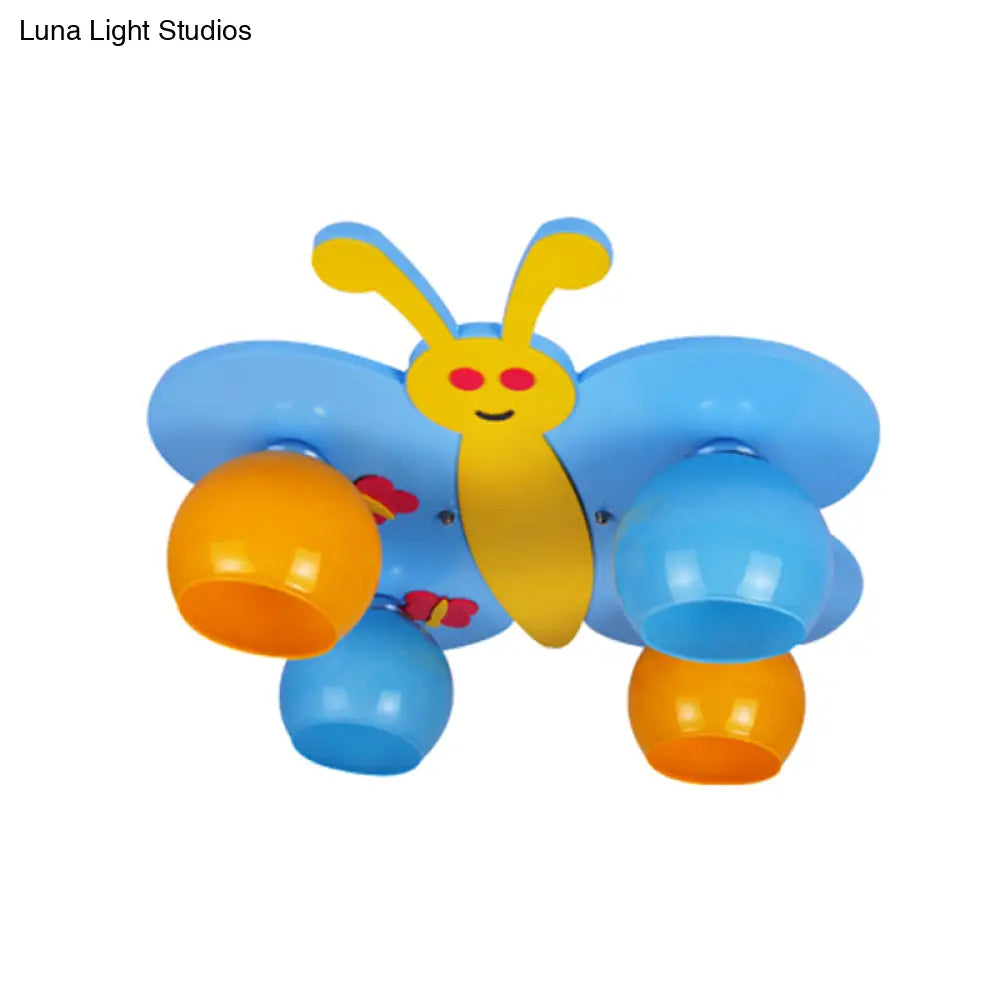 ديكوربايتس™ مصباح سقف على شكل فراشة كرتونية زرقاء بأربعة رؤوس خشبية لغرفة الأطفال