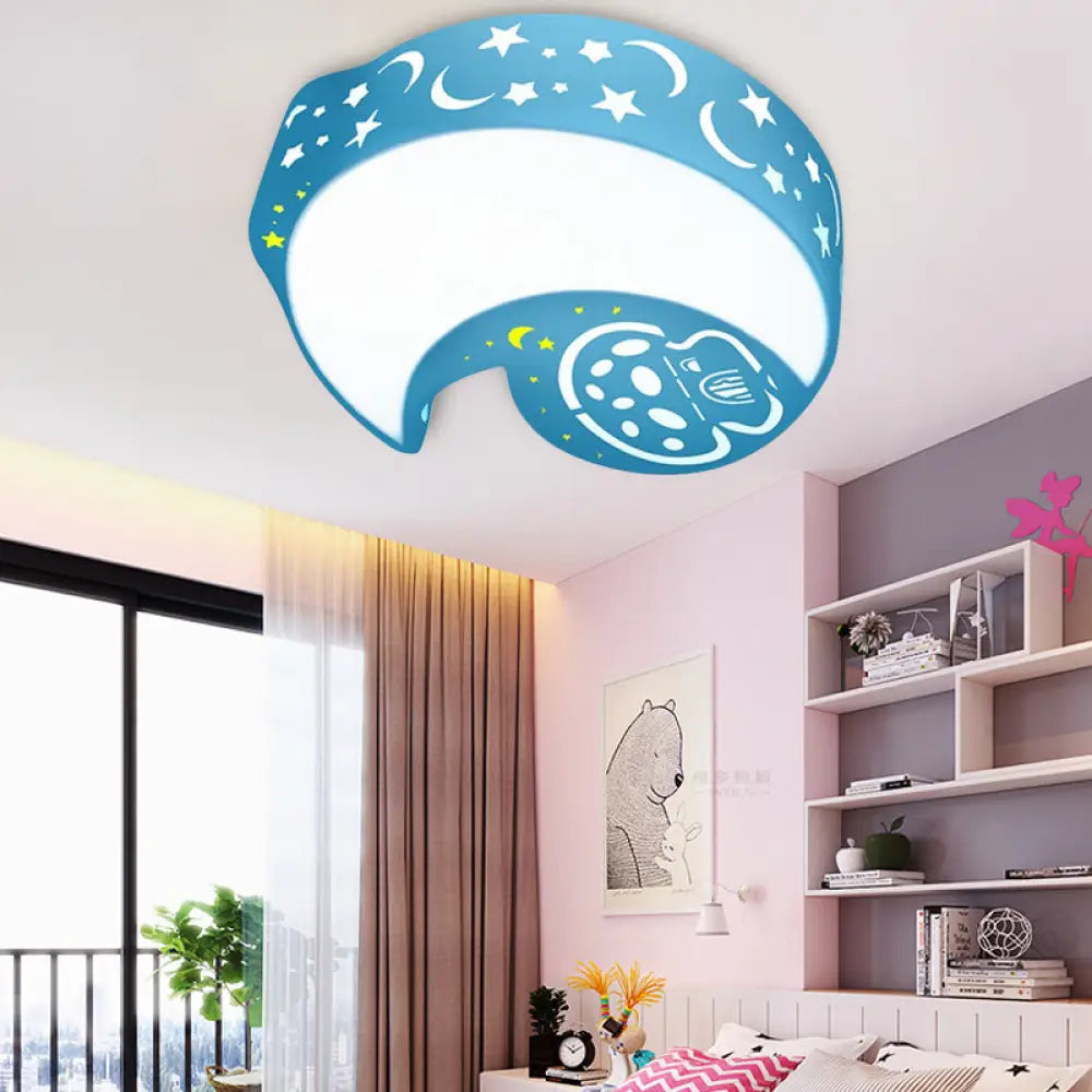 ديكوربايتس™ مصباح سقف قمري أزرق كرتوني للأطفال في رياض الأطفال مع حامل أكريليك مدمج