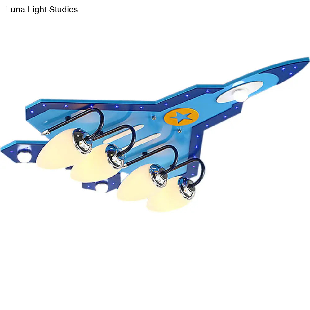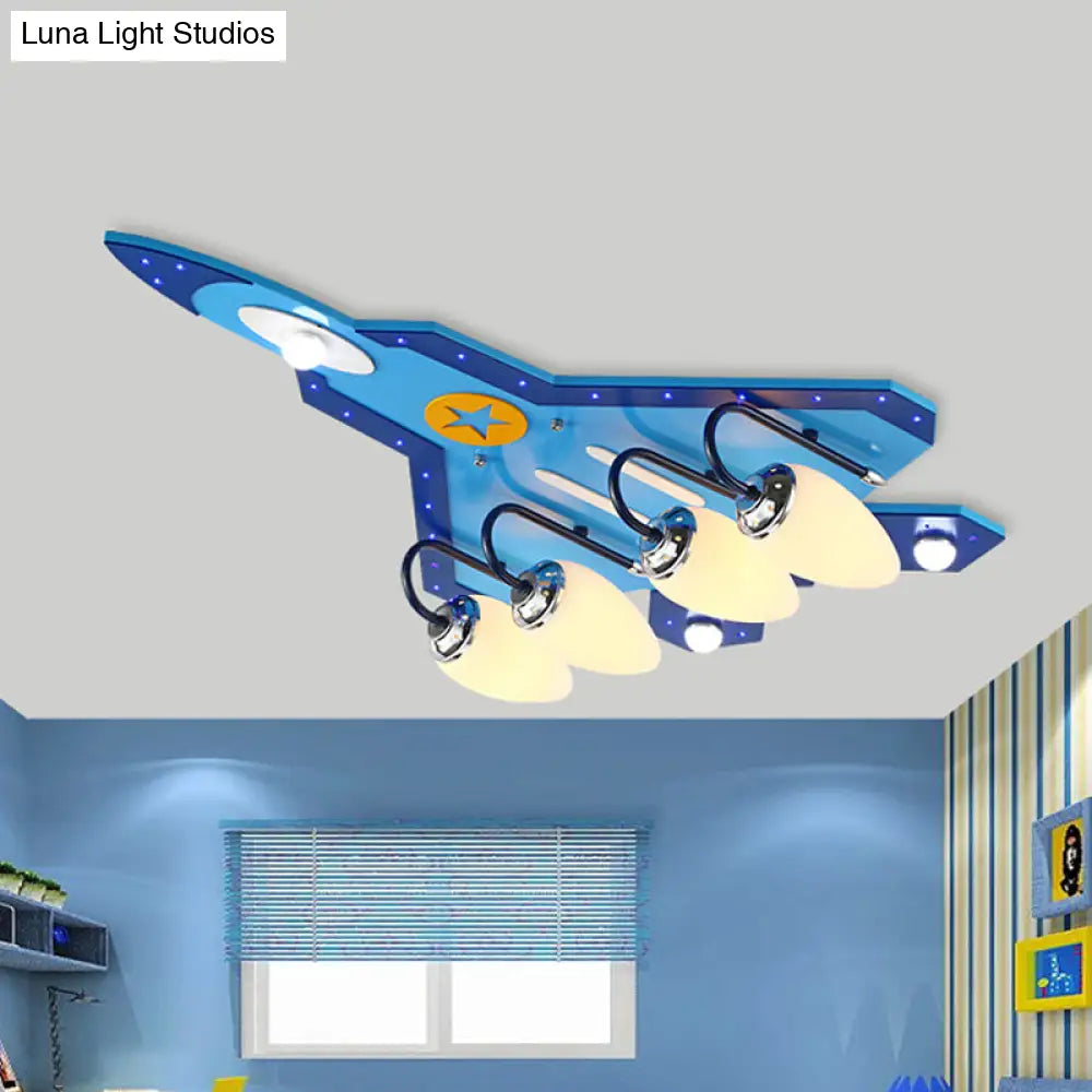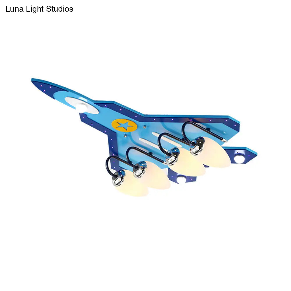 مصباح DecorBites™ أزرق على شكل طائرة كرتونية، مثبت على السقف، بإضاءة دافئة/بيضاء - تصميم خشبي بثلاثة مصابيح ونصف