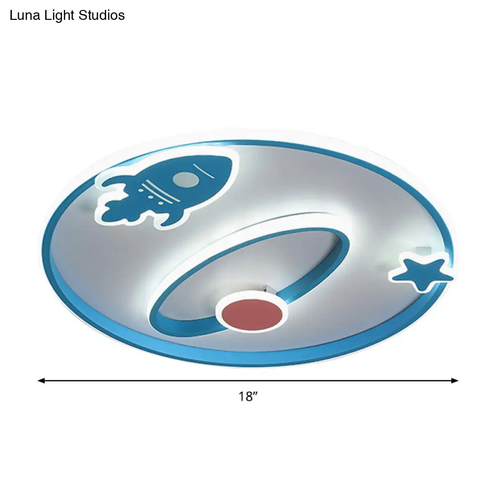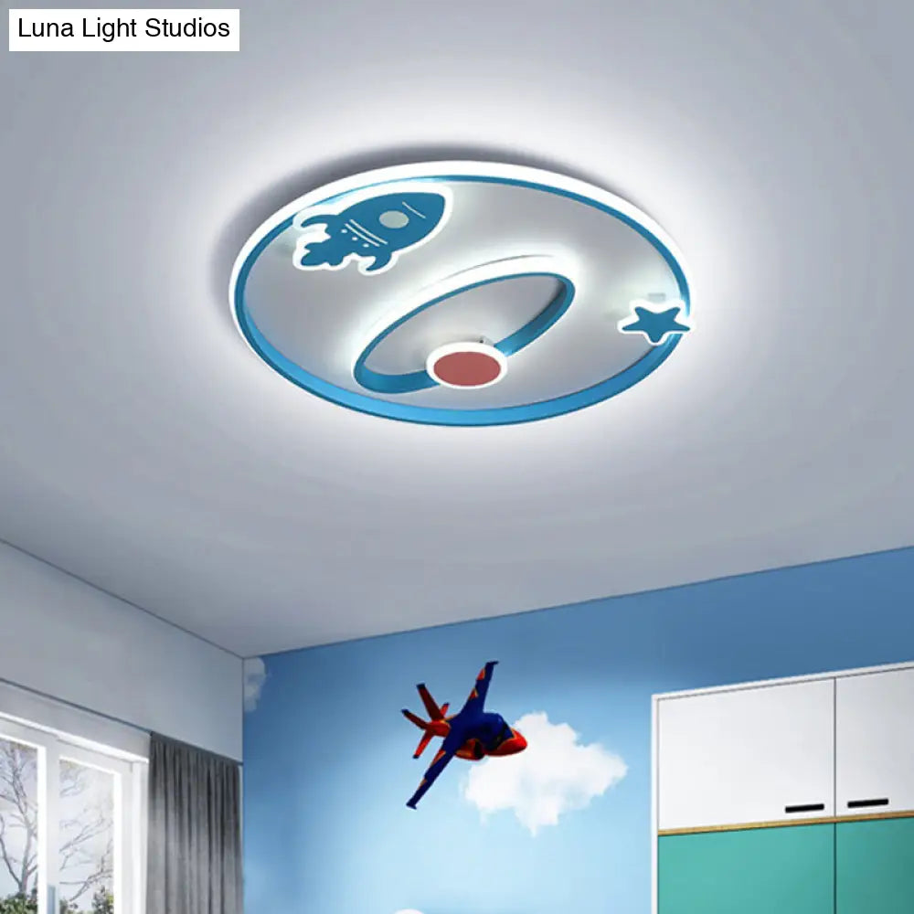 ديكوربايتس™ مصباح سقف أزرق على شكل سفينة فضاء كرتونية - تركيب أكريليك LED مدمج لغرفة الأطفال