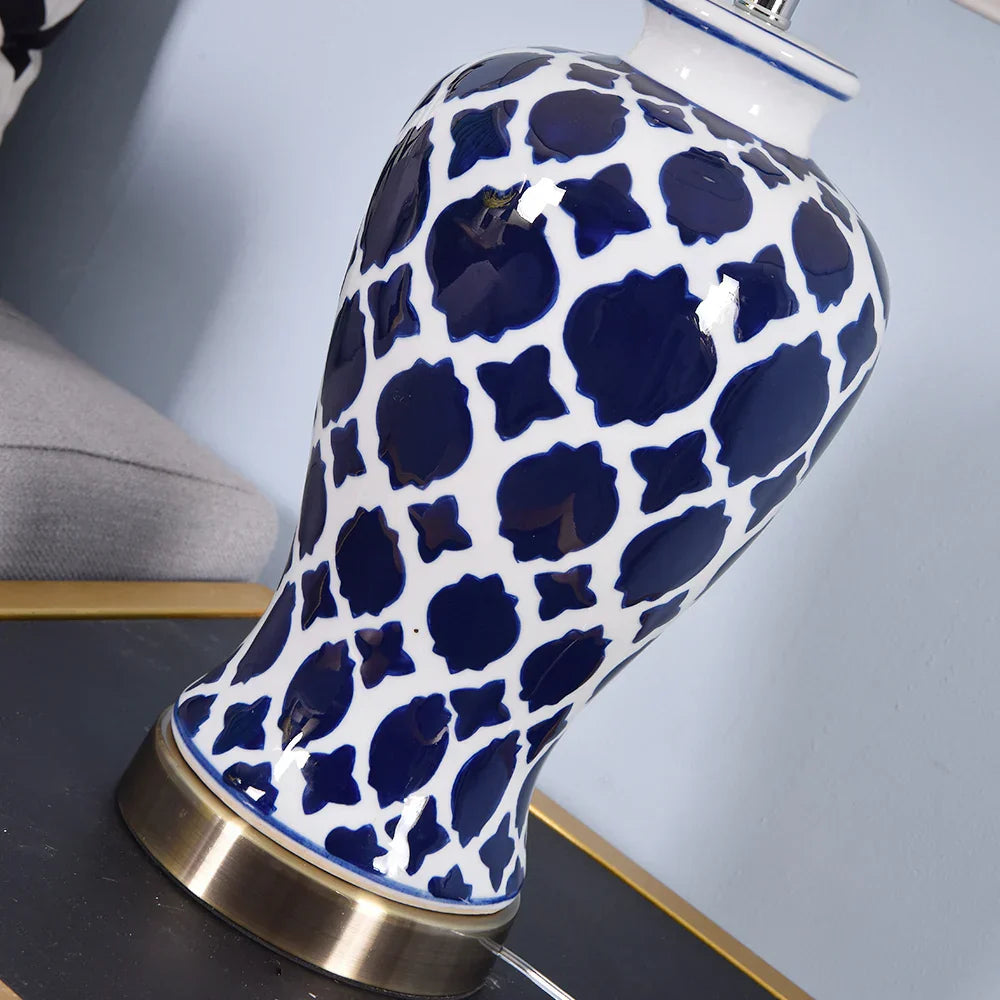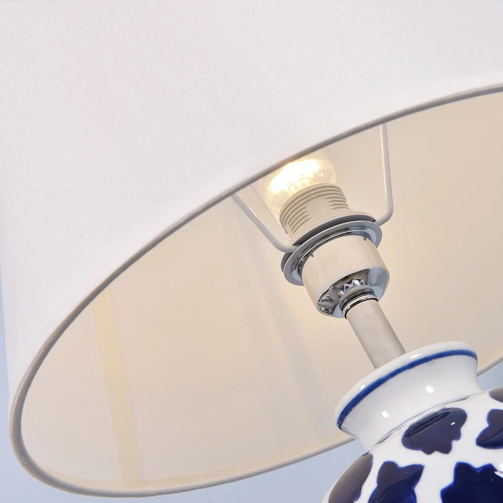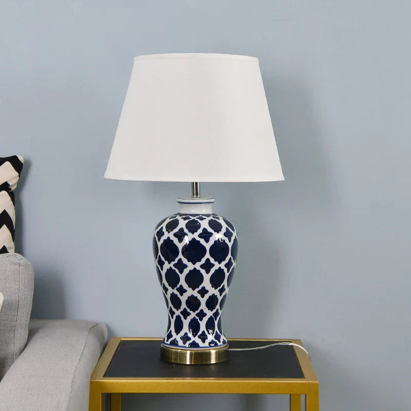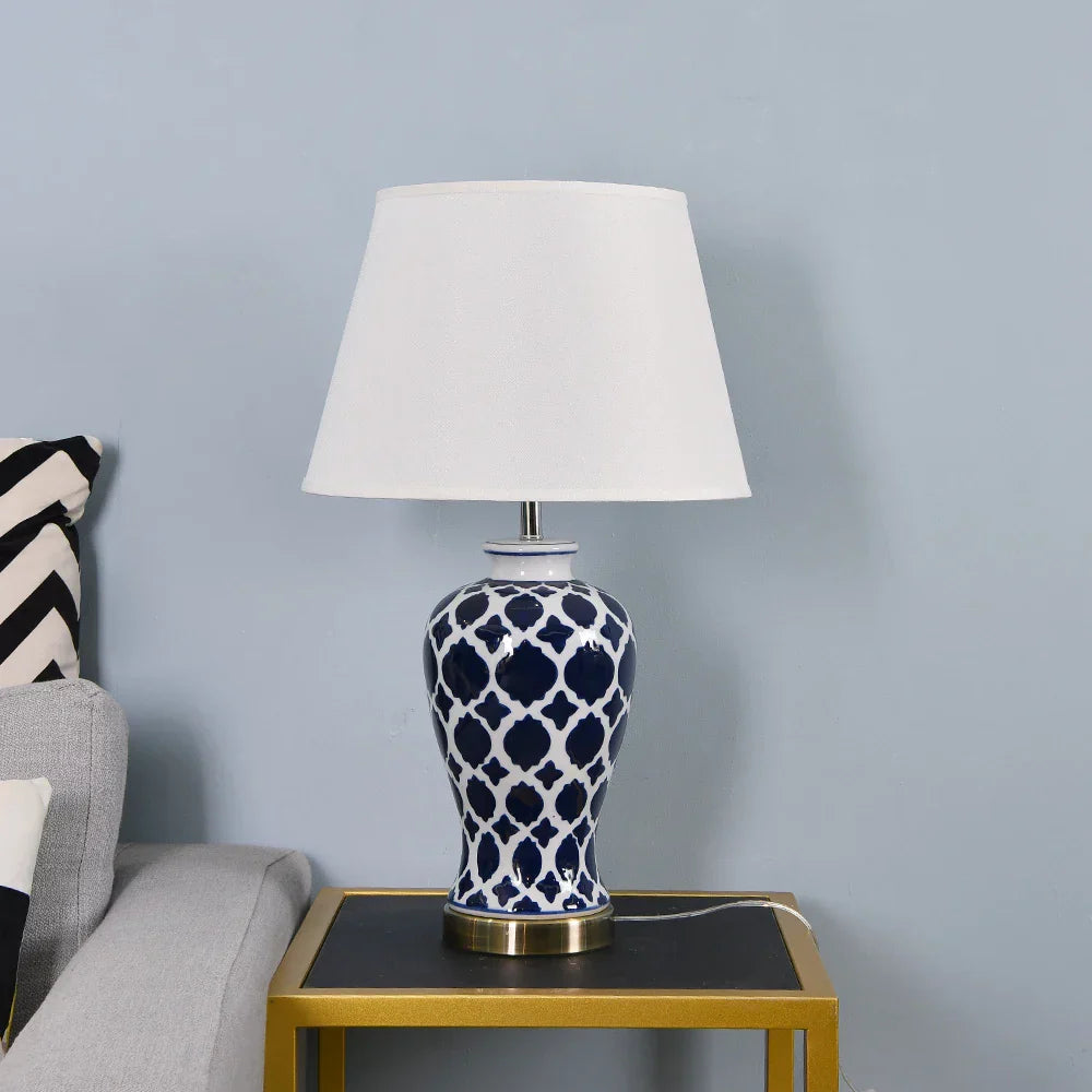 مصباح طاولة سيراميك أزرق من DecorBites™ - مصباح طاولة LED بتصميم أمريكي كلاسيكي لغرفة النوم وغرفة المعيشة