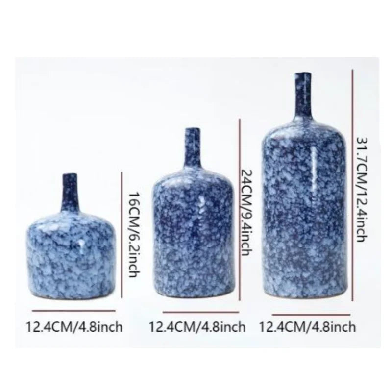 ديكوربايتس™ مزهرية خزفية زرقاء، وعاء بورسلين، تنسيق زهور، إكسسوارات ديكور منزلي
