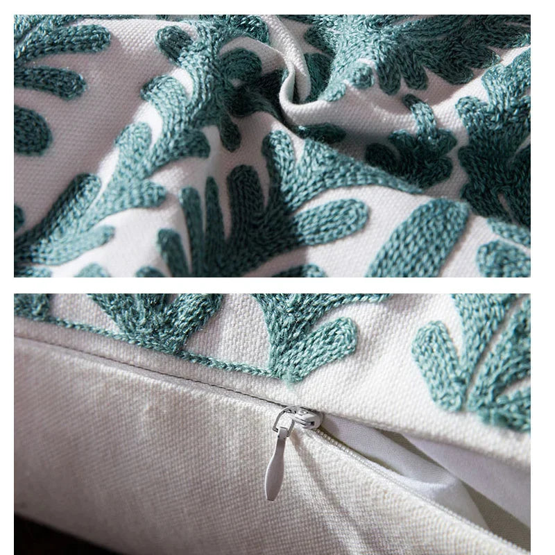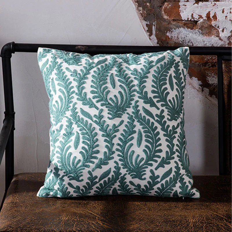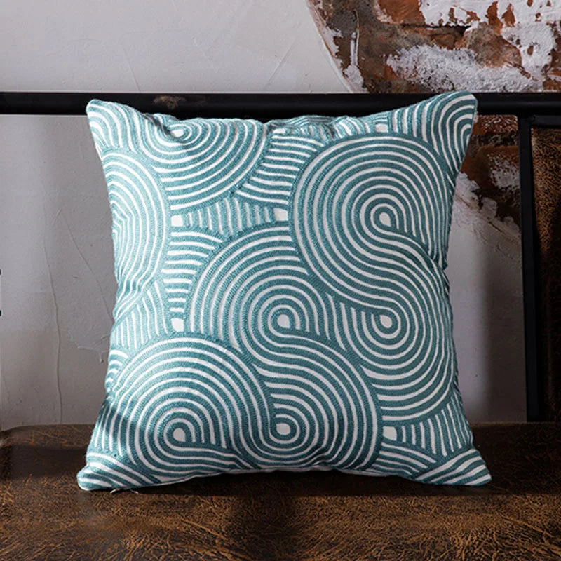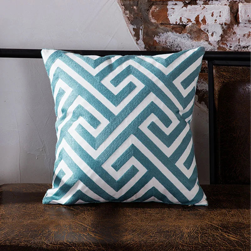 غطاء وسادة قطني من ديكوربايتس™ مطرز هندسيًا باللون الأزرق، مقاس 45×45 سم