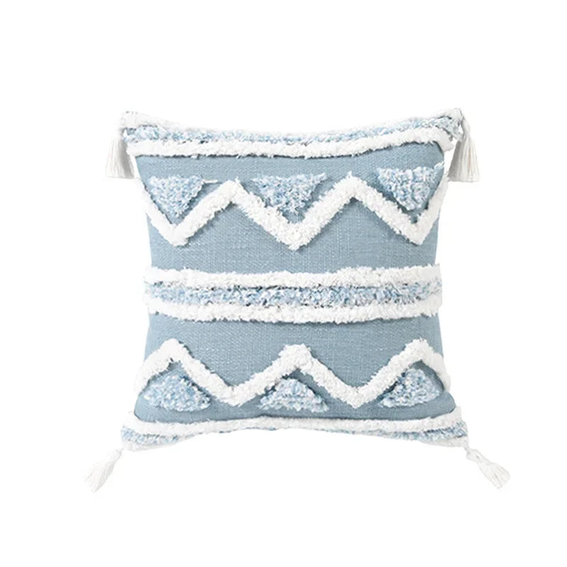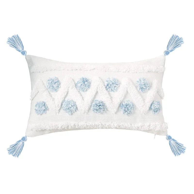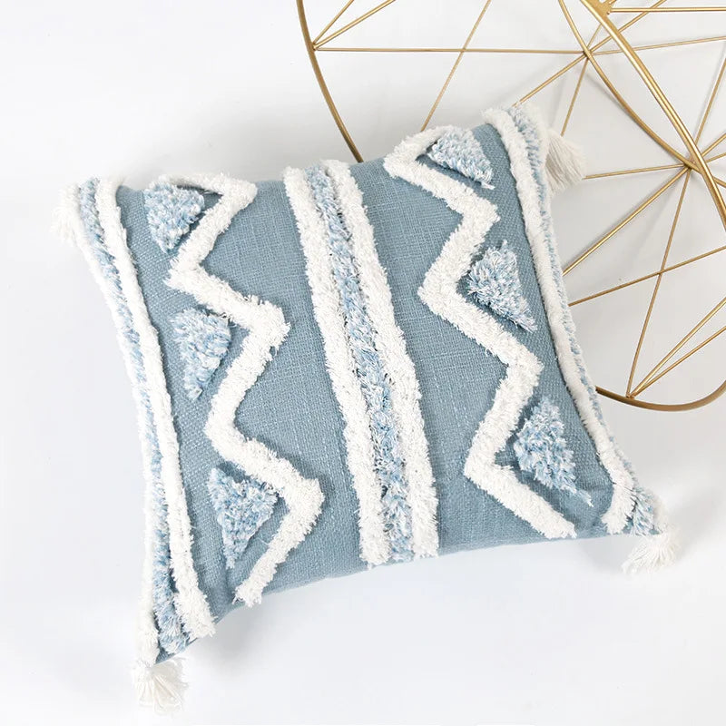صُنع طقم أغطية وسائد ديكوربايتس من مزيج من مواد عالية الجودة، بما في ذلك البوليستر والقطن، ليوفر الراحة والمتانة. يُضفي النمط الهندسي المُزخرف، المُدمج بألوان الأبيض والأزرق الخلابة، لمسةً أنيقةً وعصريةً على أي غرفة.