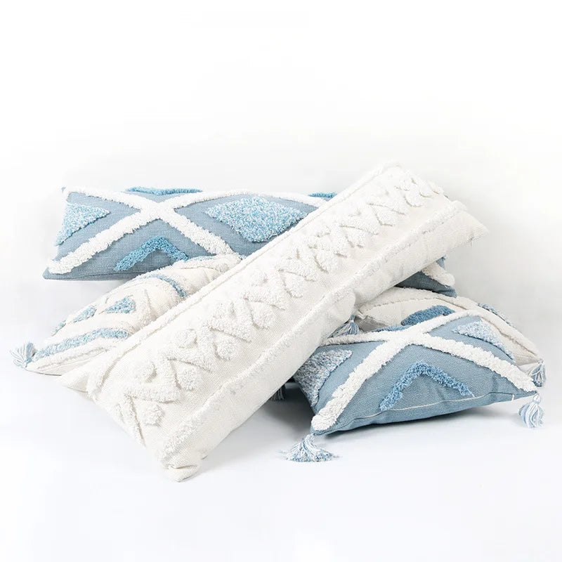 طقم أغطية وسائد هندسية زرقاء طويلة الخصر من DecorBites™، 30×100 سم