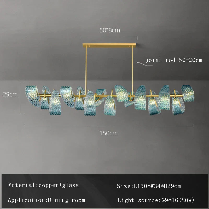 نقدم لكم ثريا السقف الزجاجية الزرقاء "ديكوربيتس" الرائعة، إضافة رائعة لأي مساحة عصرية. تتميز هذه الثريا الأنيقة بقاعدة من G9 وهيكل مصنوع من النحاس المصقول، مما يضفي عليها لمسة من الفخامة والرقي.