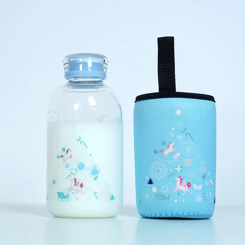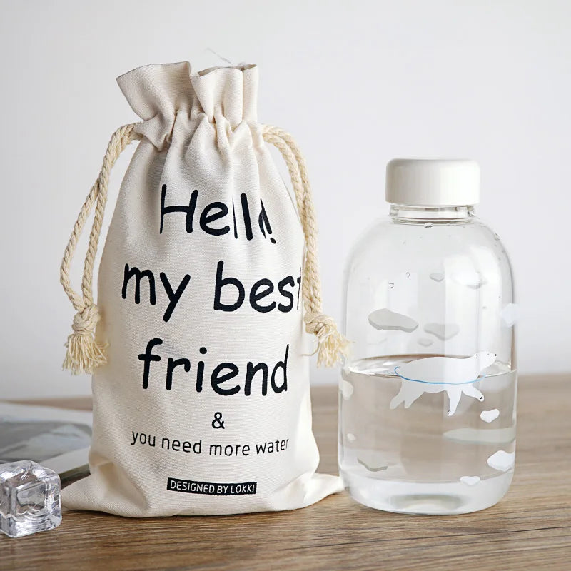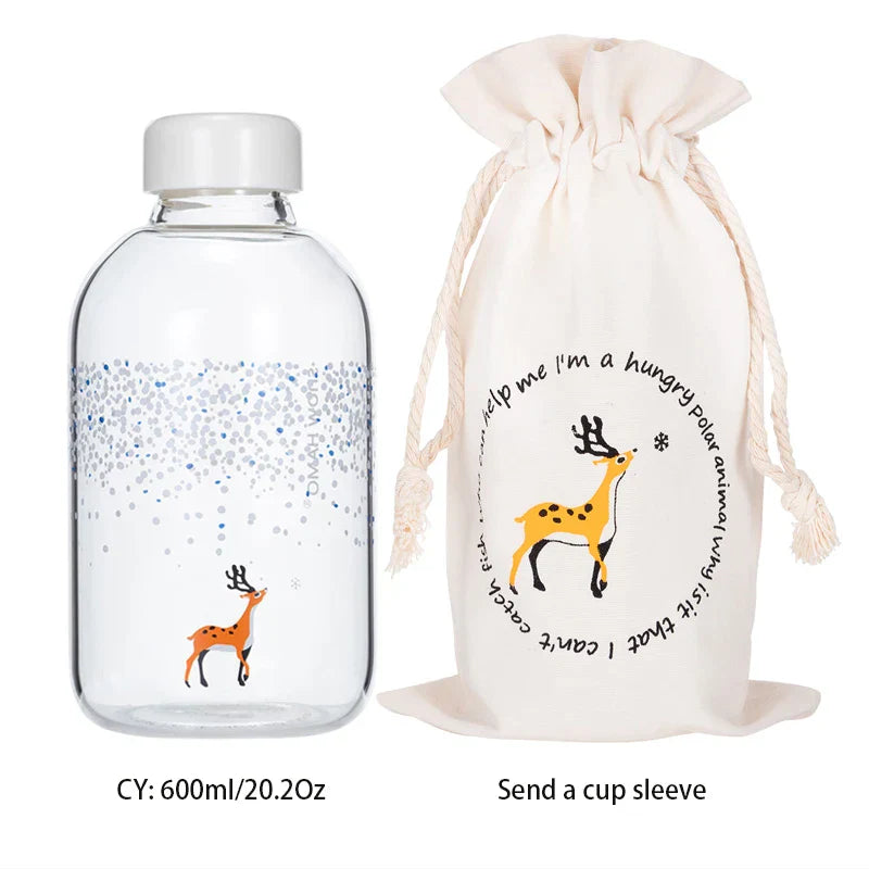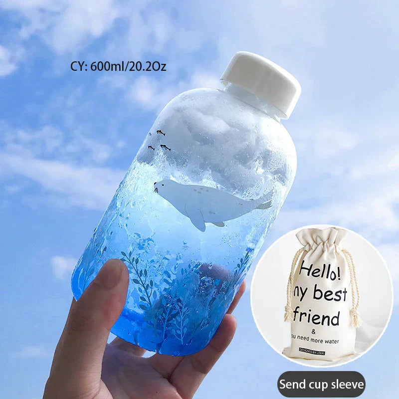 زجاجة مياه زجاجية زرقاء من ديكوربايتس™ سعة 600 مل بتصميم ختم دب قطبي لطيف