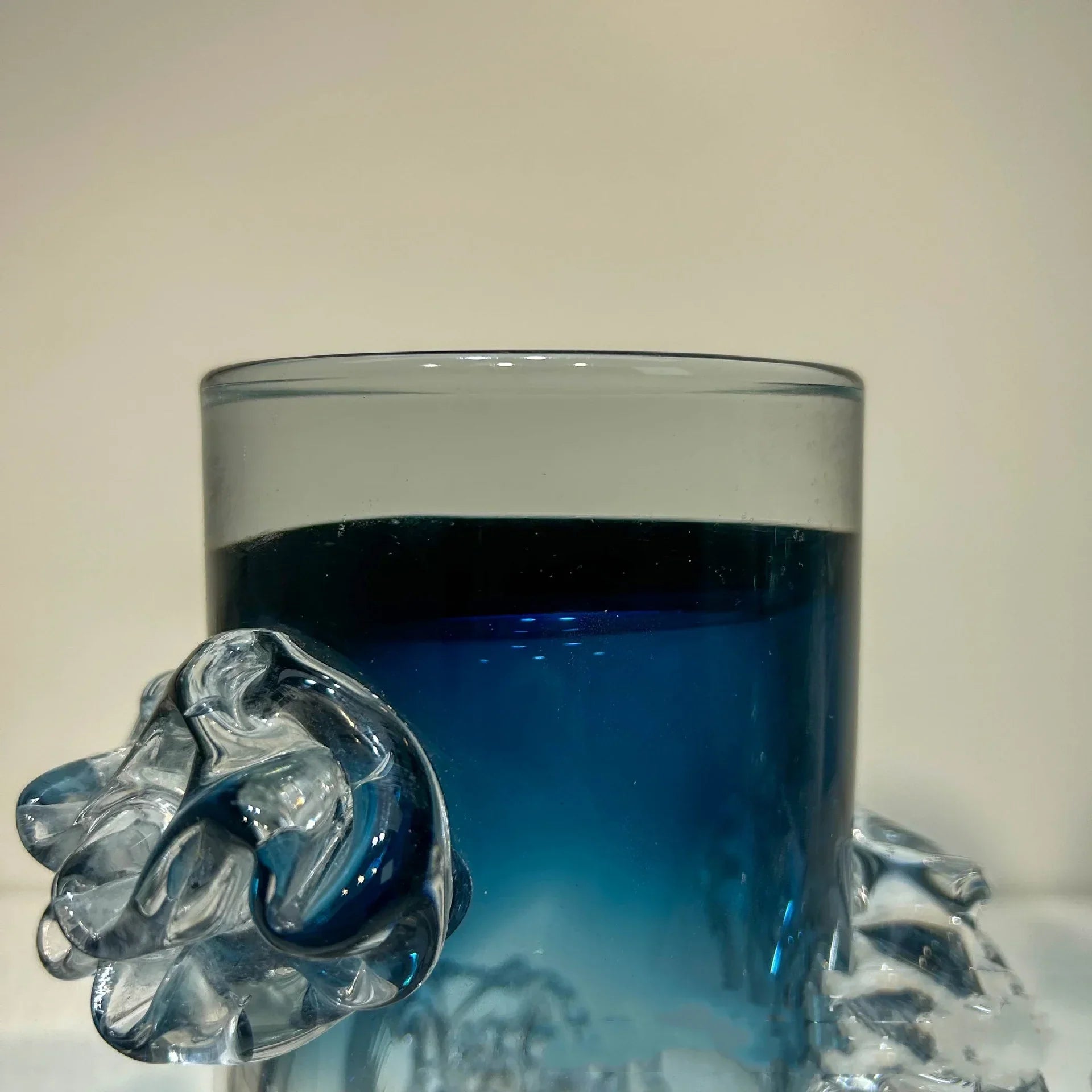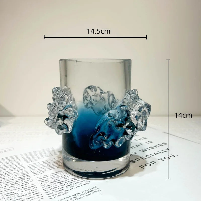 صُنعت هذه المزهرية من زجاج وكريستال عالي الجودة، وتتميز بالأناقة والرقي. تصميمها الأزرق المتدرج يضفي عليها لمسةً جماليةً آسرة، ما يجعلها قطعةً مميزةً في أي مكان.