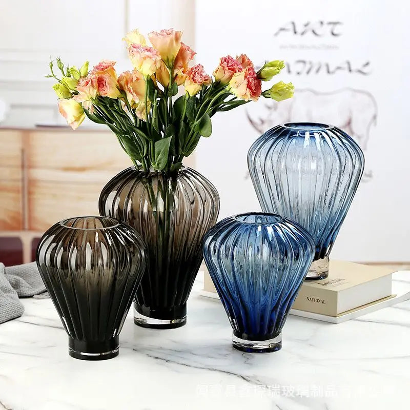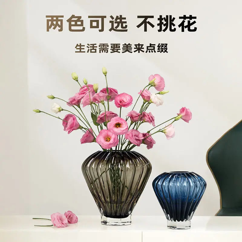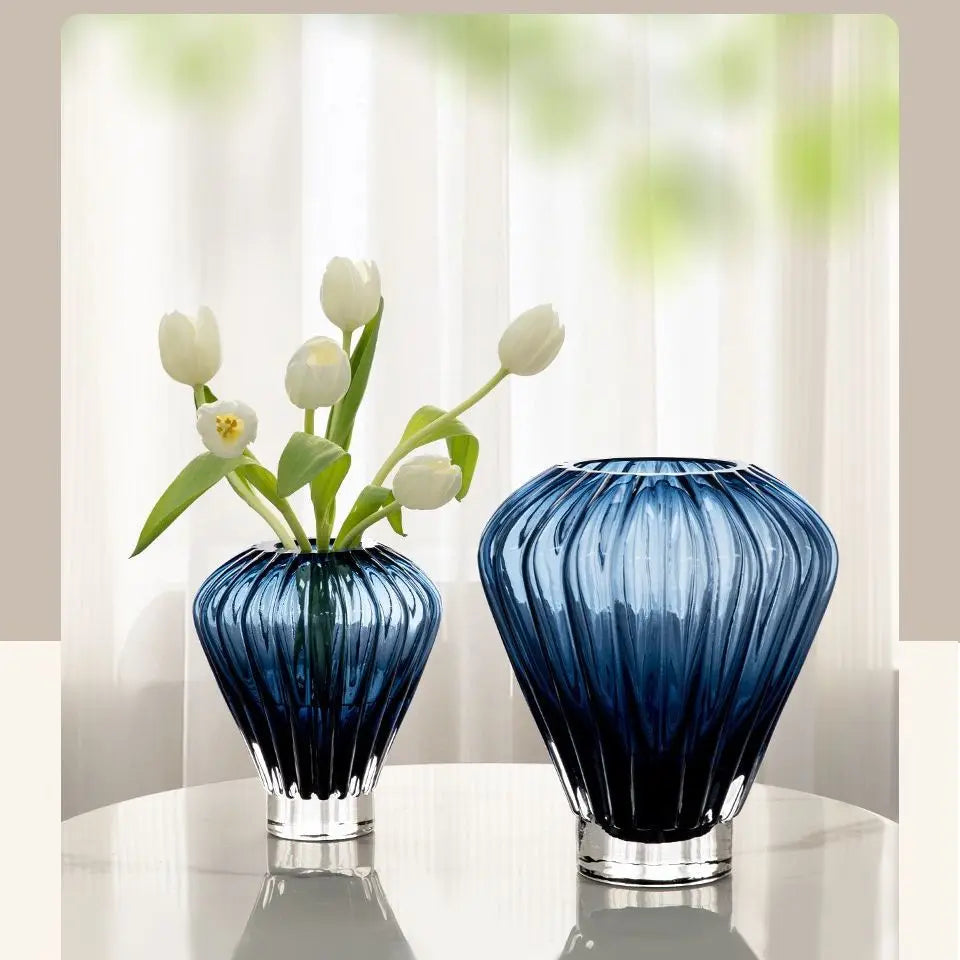 ديكور بايتس™ - مزهرية منطاد هواء ساخن باللون الأزرق، تنسيق زهور الزنبق، ديكور منزلي