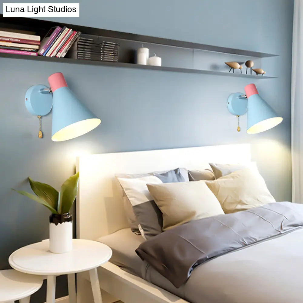 ديكوربايتس™ مصباح حائط معدني أزرق واسع النطاق: مصباح حائط عصري مع سلسلة سحب