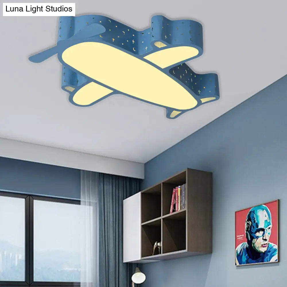 ديكوربايتس™ مصباح سقف غرفة نوم الأطفال Blue Plane: تركيب أكريليك كرتوني مدمج