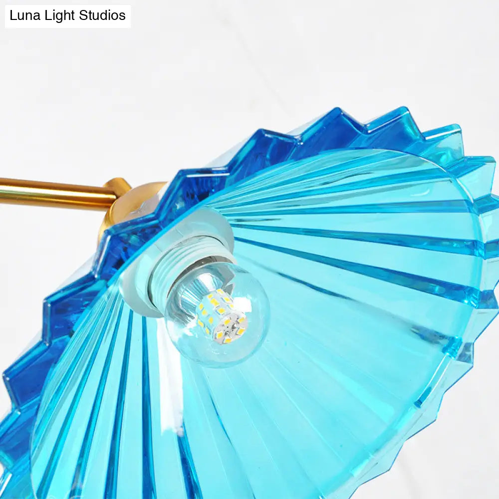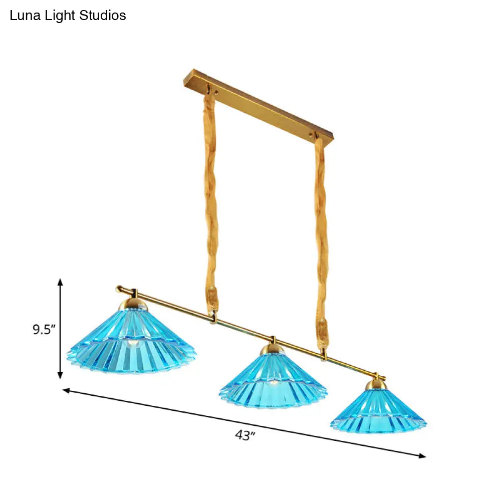 مصباح معلق مخروطي زجاجي أزرق مضلع من DecorBites™ - مصباح غرفة طعام تقليدي بثلاث مصابيح