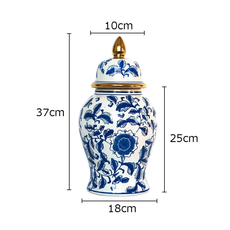 ديكوربايتس™ - برطمان زنجبيل من البورسلين الأزرق والأبيض: مزهرية شاي عتيقة لتزيين المكتب