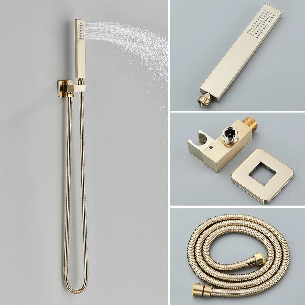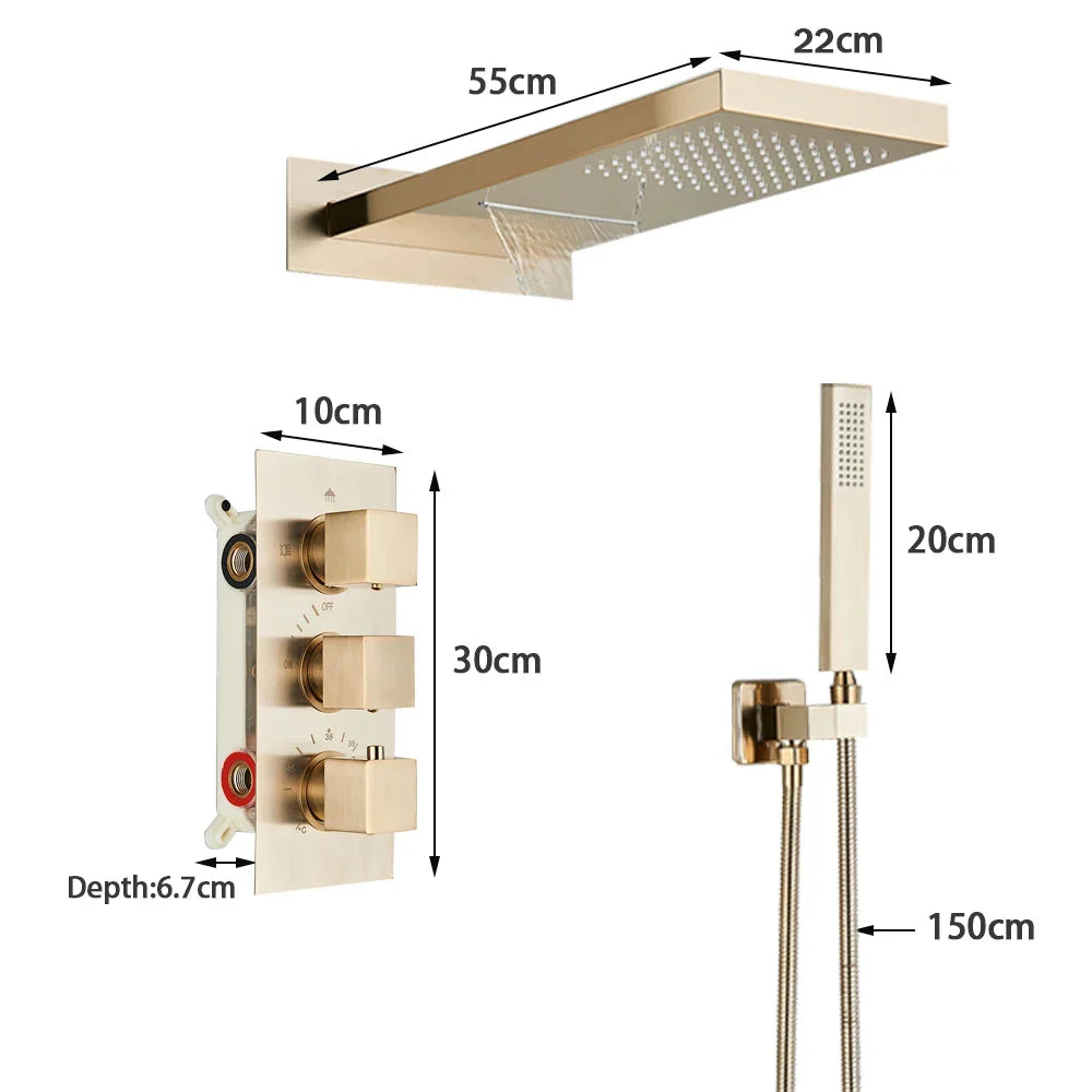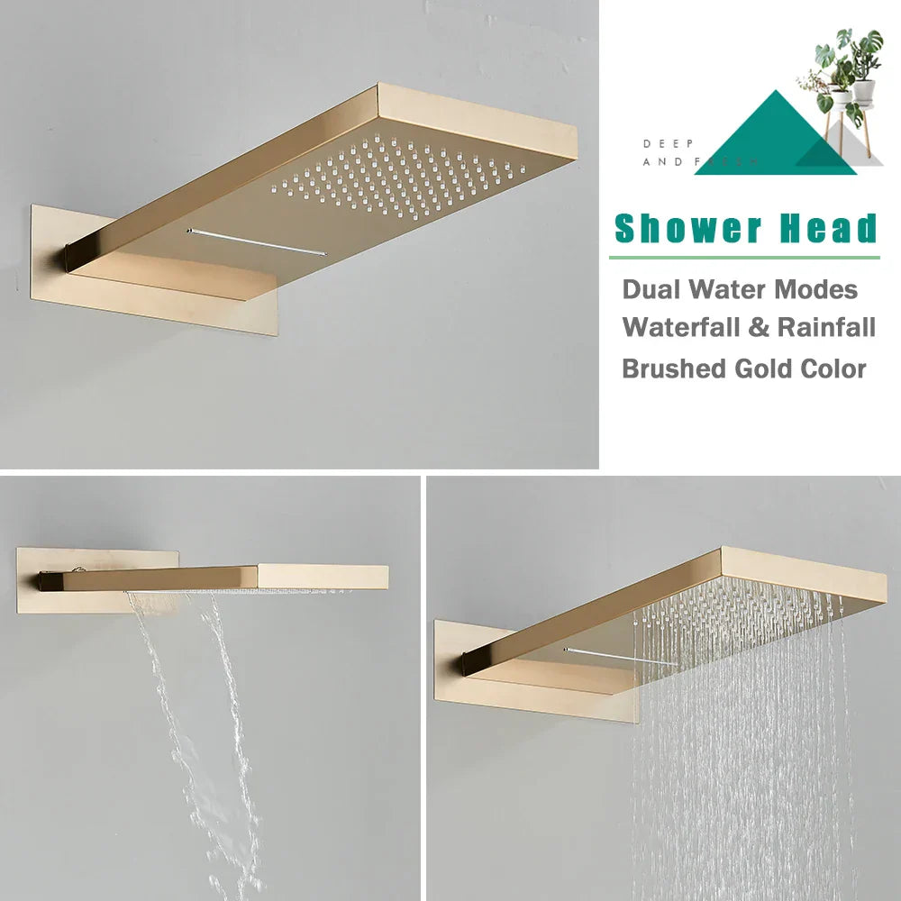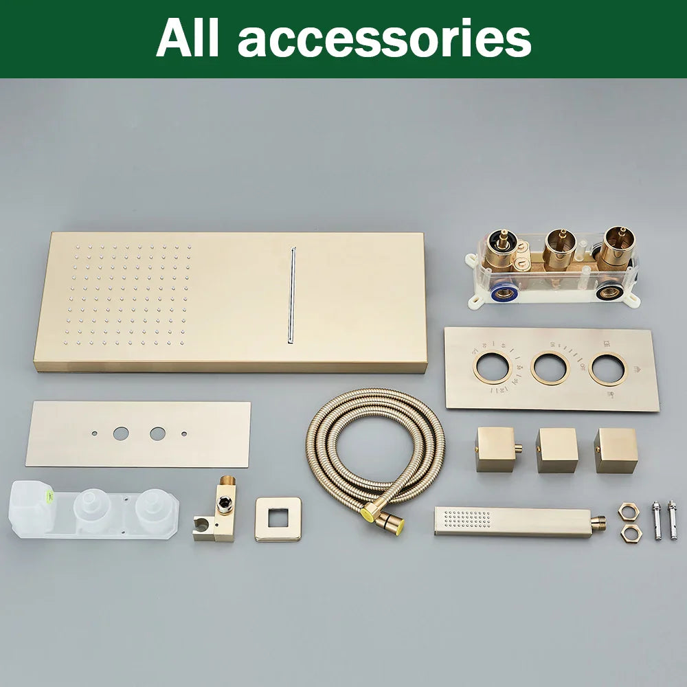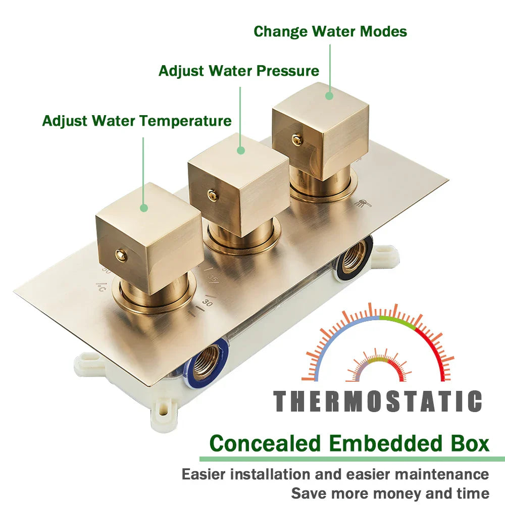 مجموعة حنفية دش ترموستاتية من DecorBites™ باللون الذهبي المصقول مع صنبور خلاط مخفي