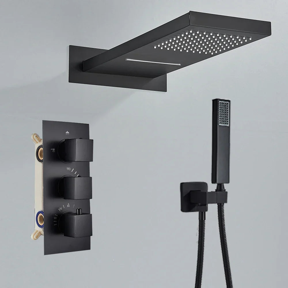 صُممت هذه المجموعة من حنفيات الدش الحرارية لتوفير الراحة، وتتضمن خلاطًا لرش المطر والشلال مع دش يدوي لتجربة استحمام فاخرة. بفضل تصميمها الثابت الدوار وصنبورها المثبت على الحائط والمدمج في صندوق مخفي، يسهل تركيبها واستخدامها.