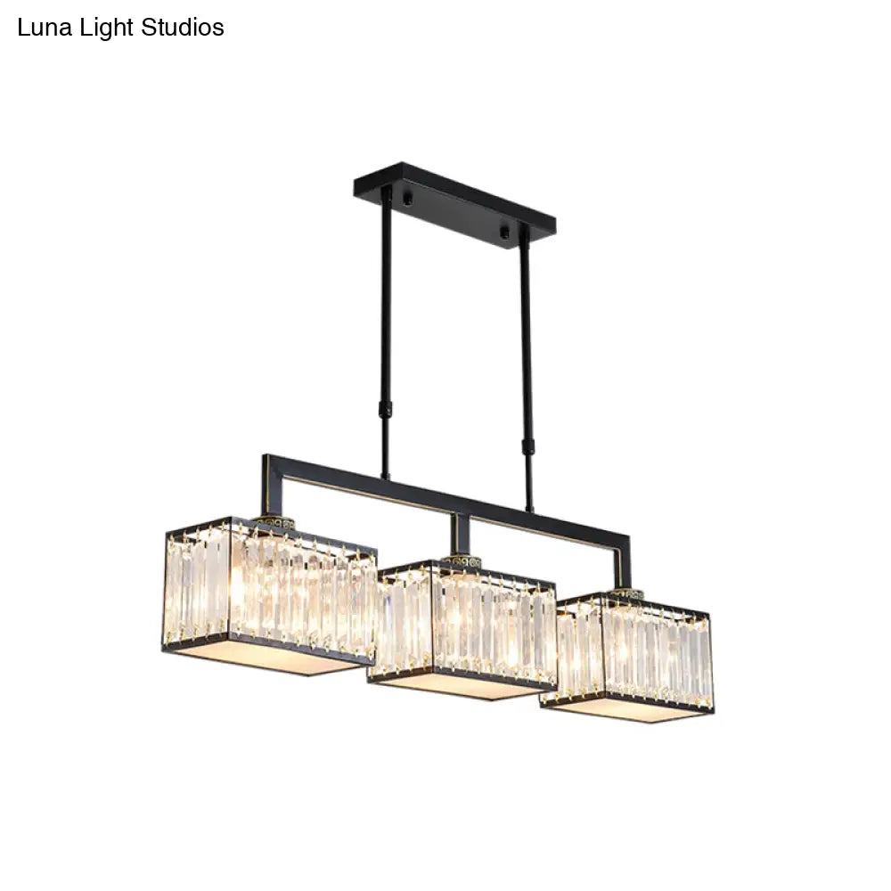 ثريا كريستالية سوداء معاصرة من DecorBites™ مزودة بإضاءة جزيرة - مصباح قاعة طعام مكعب، 3 لمبات