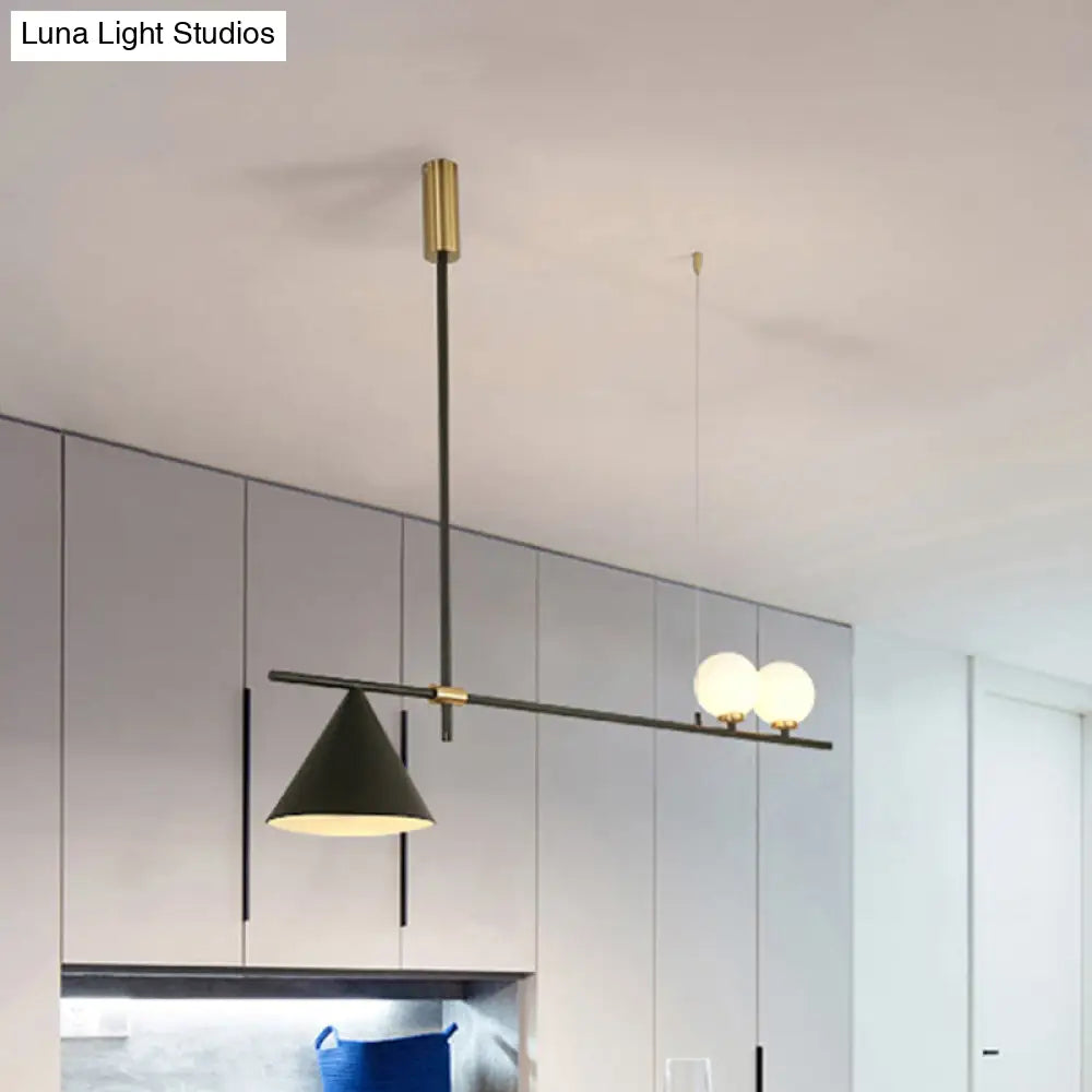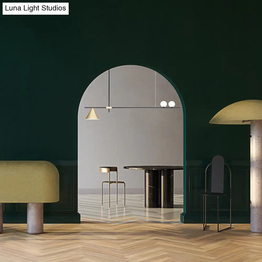 مصباح مخروطي معدني معاصر من DecorBites™ بثلاثة رؤوس ولمسة نهائية ذهبية/سوداء لسقف غرفة الطعام