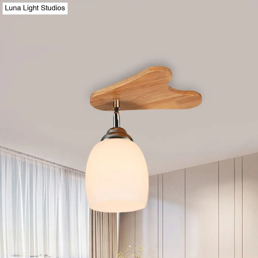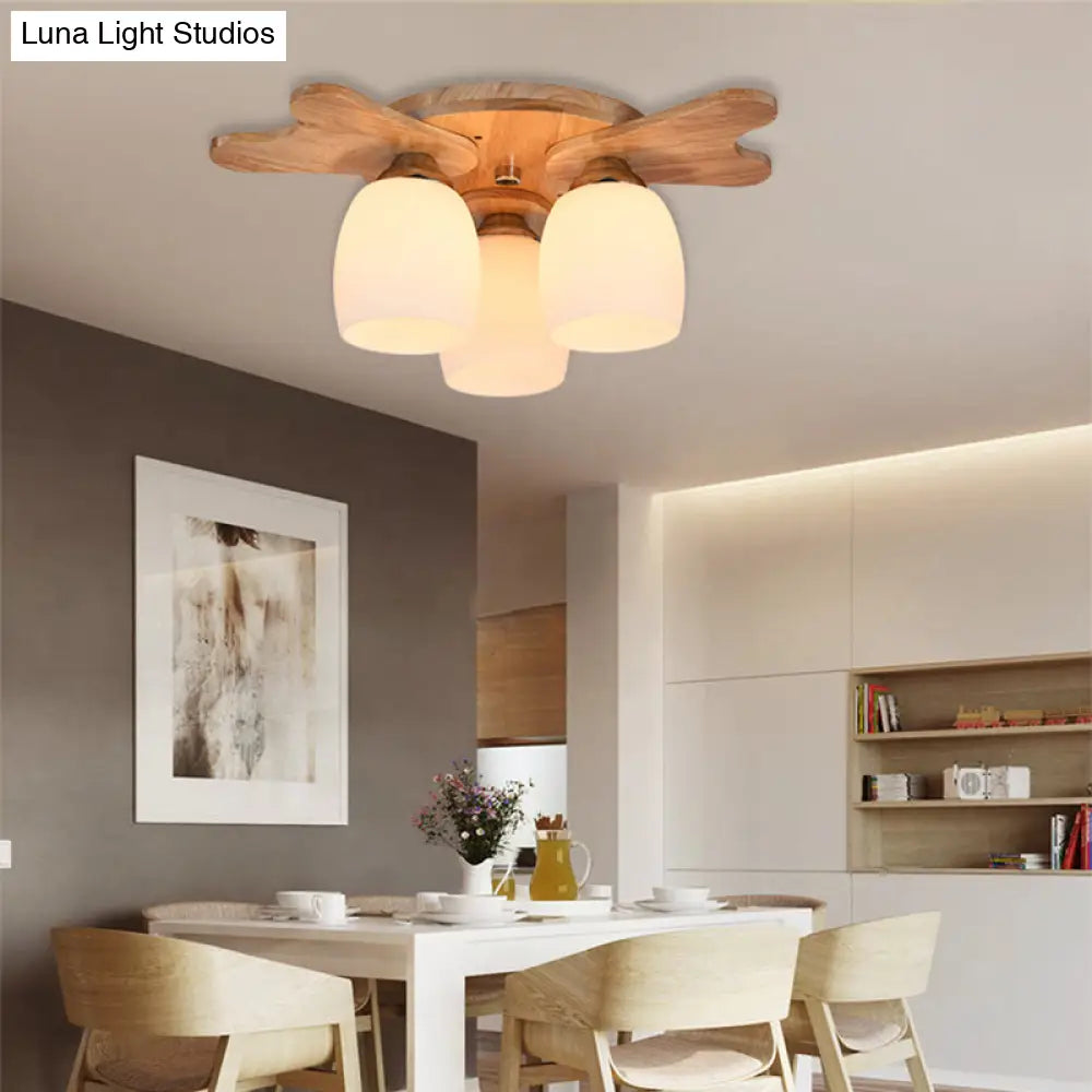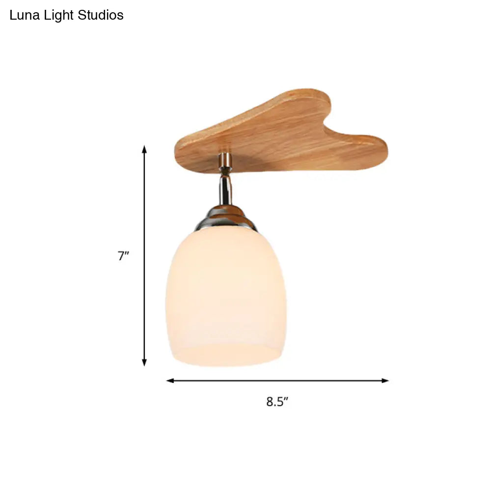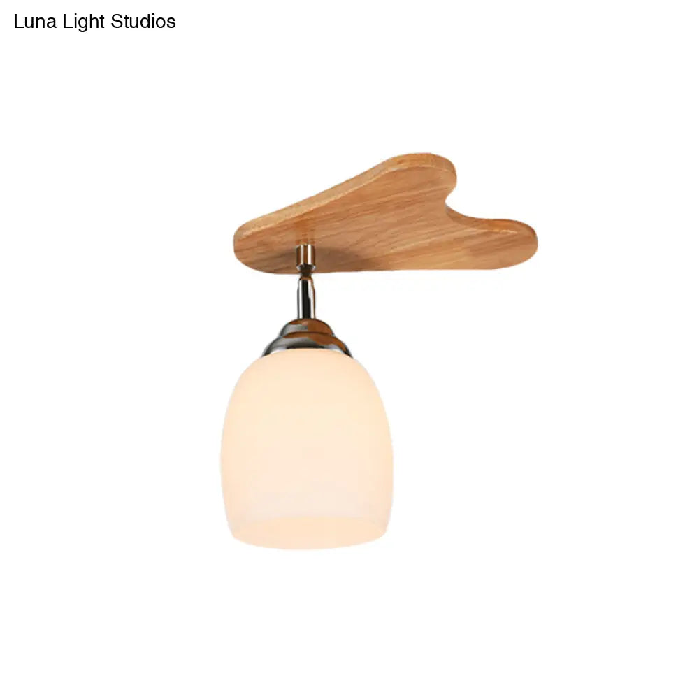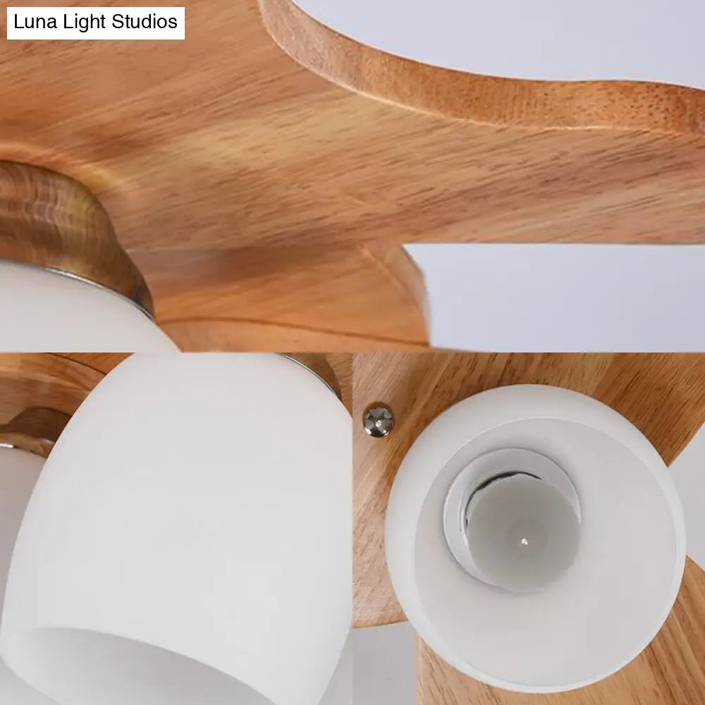 مصباح ديكوربايتس™ المعاصر المصنوع من زجاج الحليب مع مظلة خشبية - 1/3/4 ضوء، لمسة نهائية باللون البيج