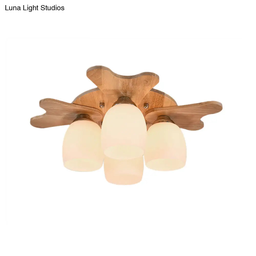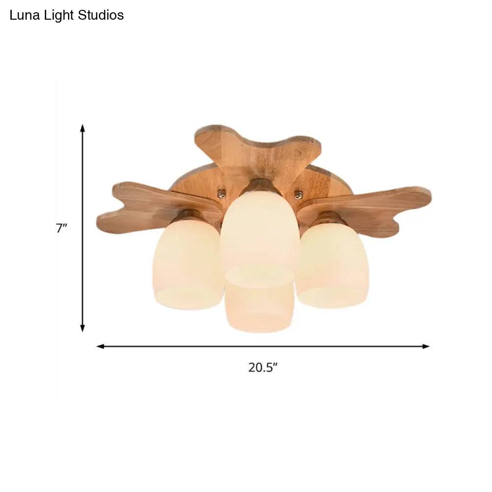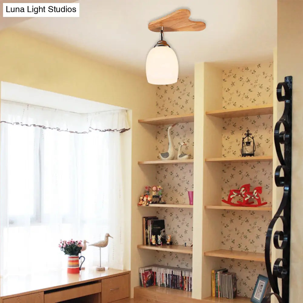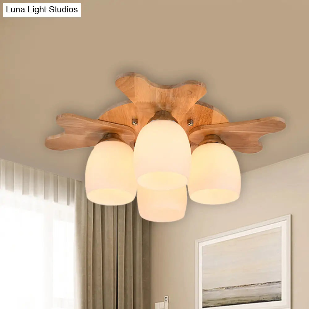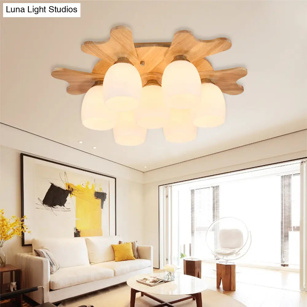 مصباح ديكوربايتس™ المعاصر المصنوع من زجاج الحليب مع مظلة خشبية - 1/3/4 ضوء، لمسة نهائية باللون البيج