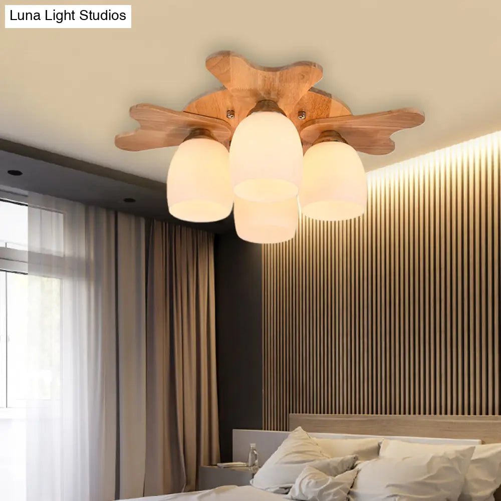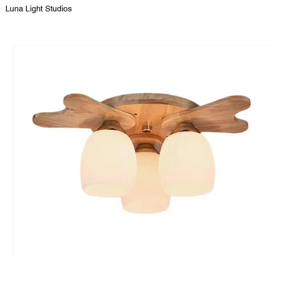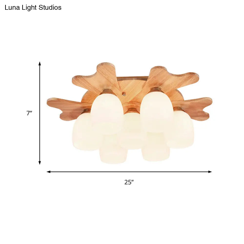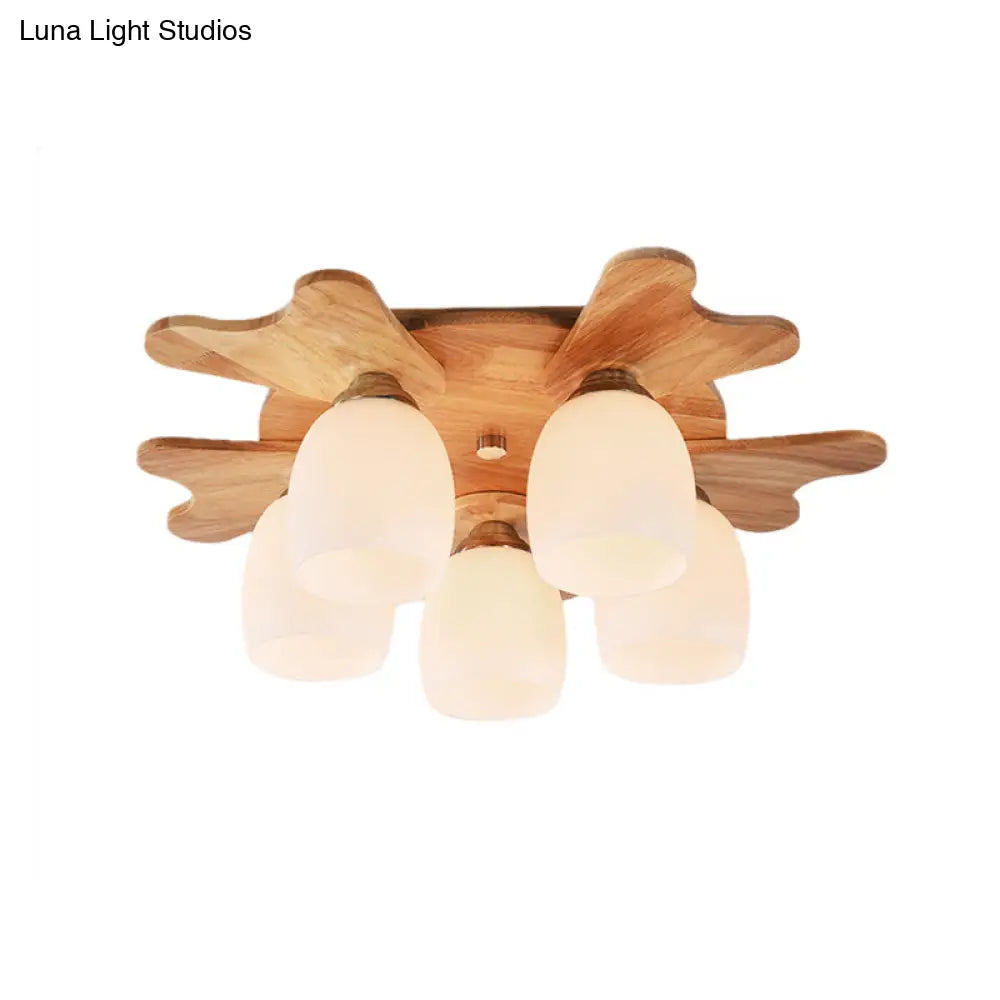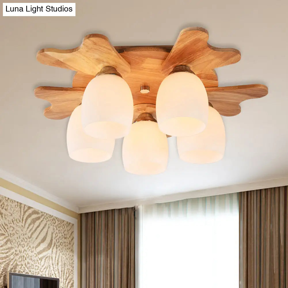 مصباح ديكوربايتس™ المعاصر المصنوع من زجاج الحليب مع مظلة خشبية - 1/3/4 ضوء، لمسة نهائية باللون البيج