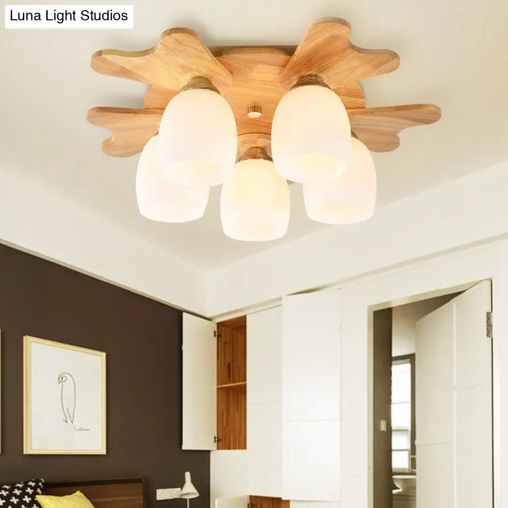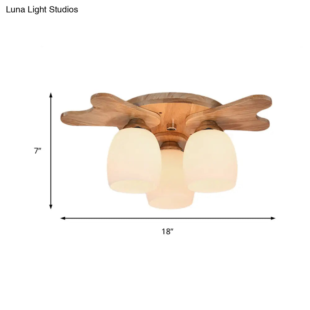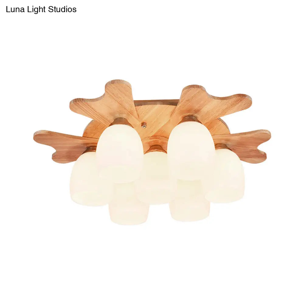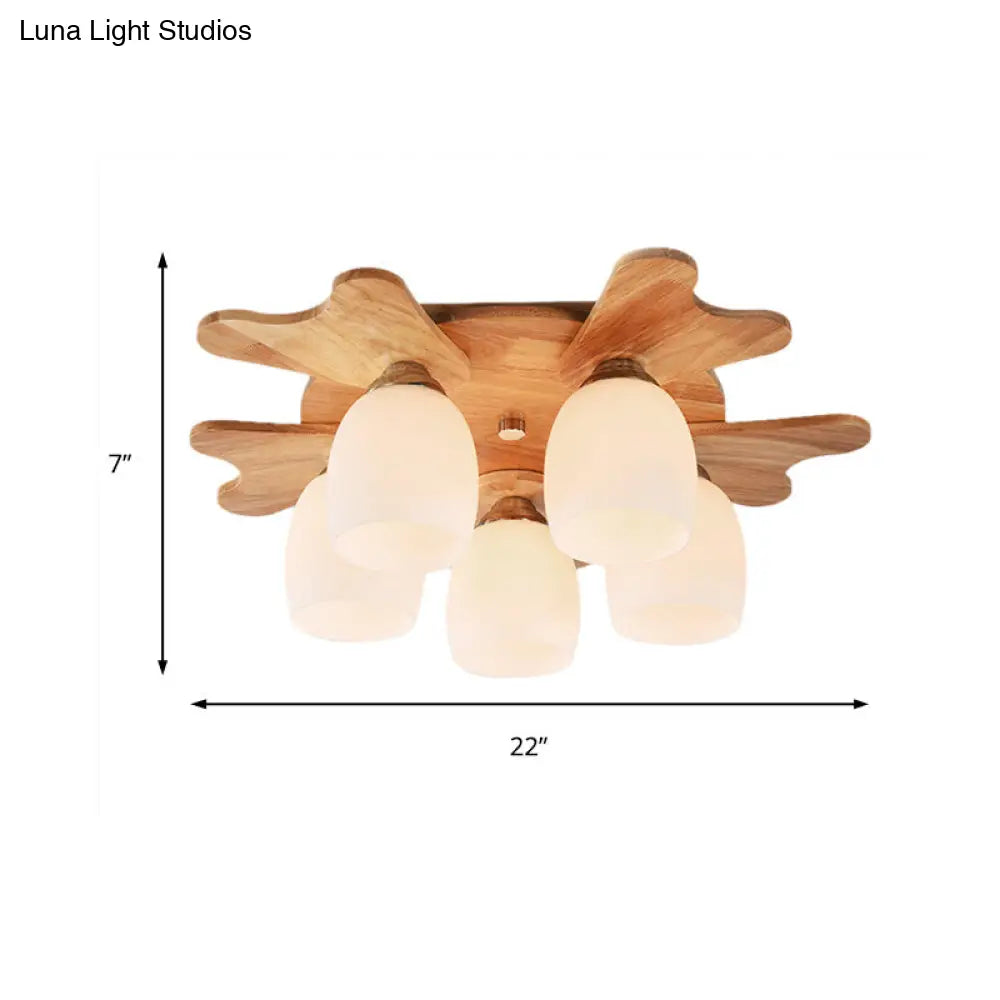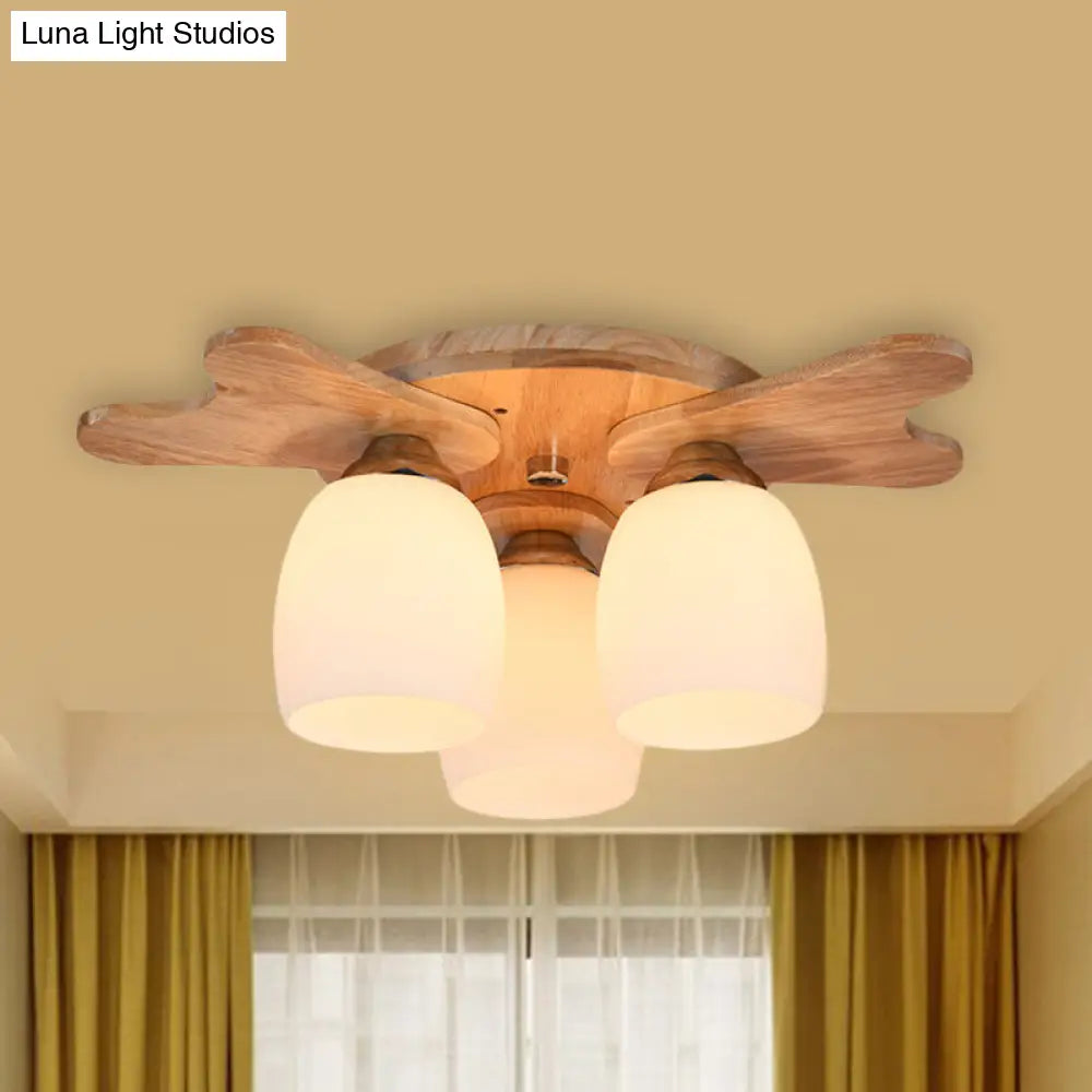 مصباح ديكوربايتس™ المعاصر المصنوع من زجاج الحليب مع مظلة خشبية - 1/3/4 ضوء، لمسة نهائية باللون البيج