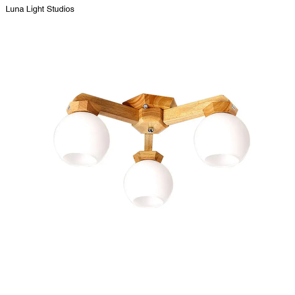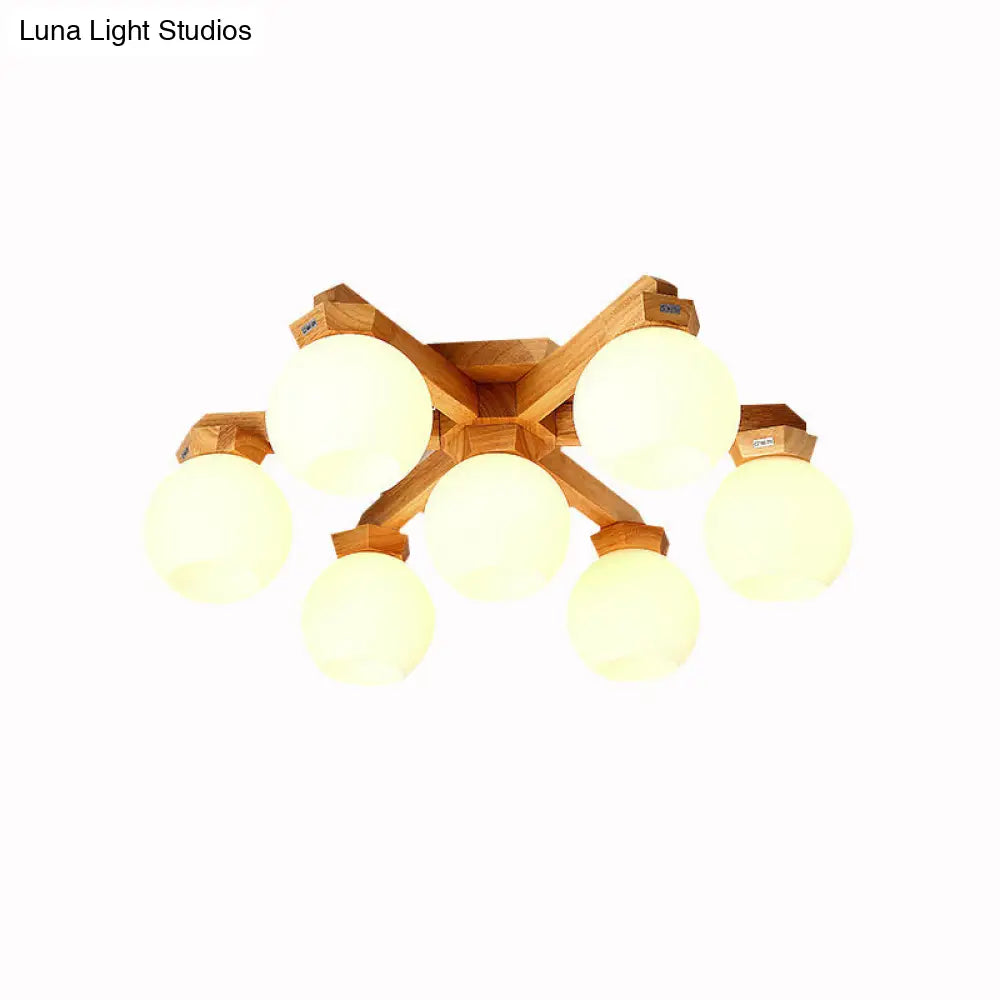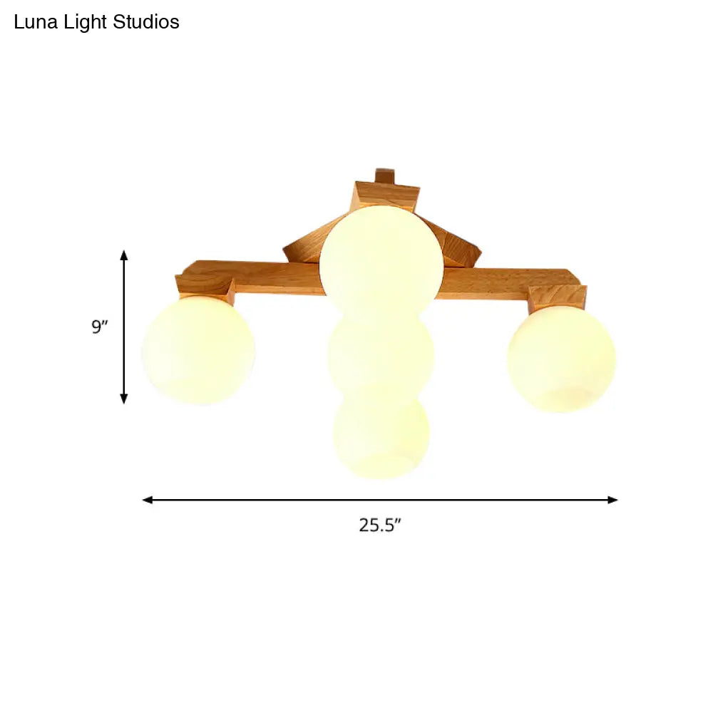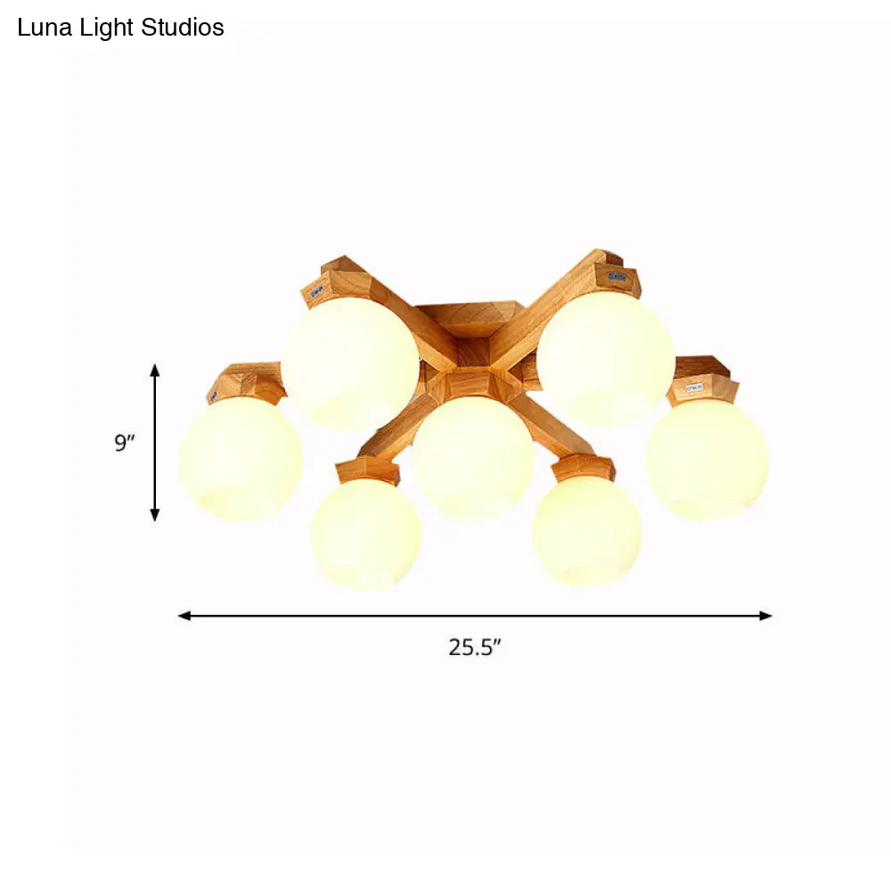 ديكوربايتس™ مصباح شبه مدمج من الزجاج الحليبي المعاصر مع ذراع تركيب خشبي - إضاءة فرعية شبه مدمجة 3/5/7 مصابيح (بيج)
