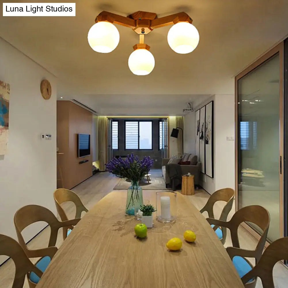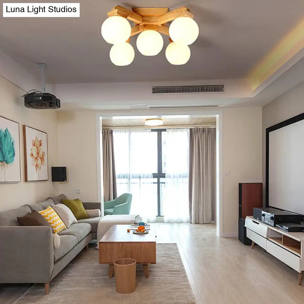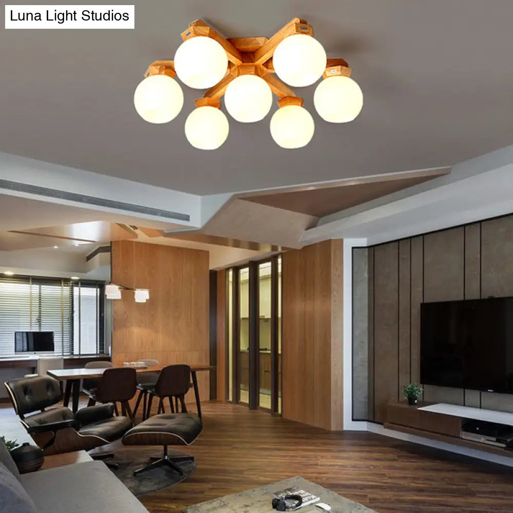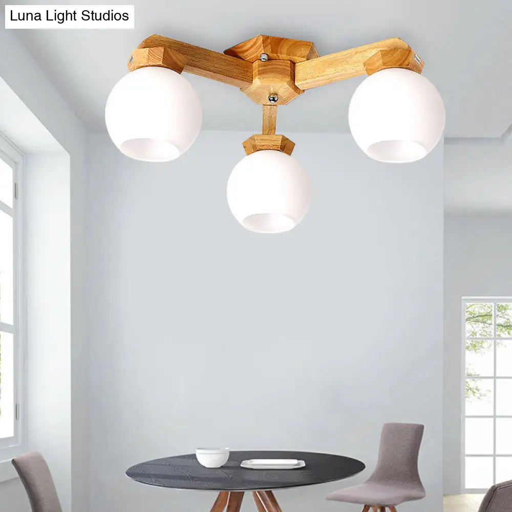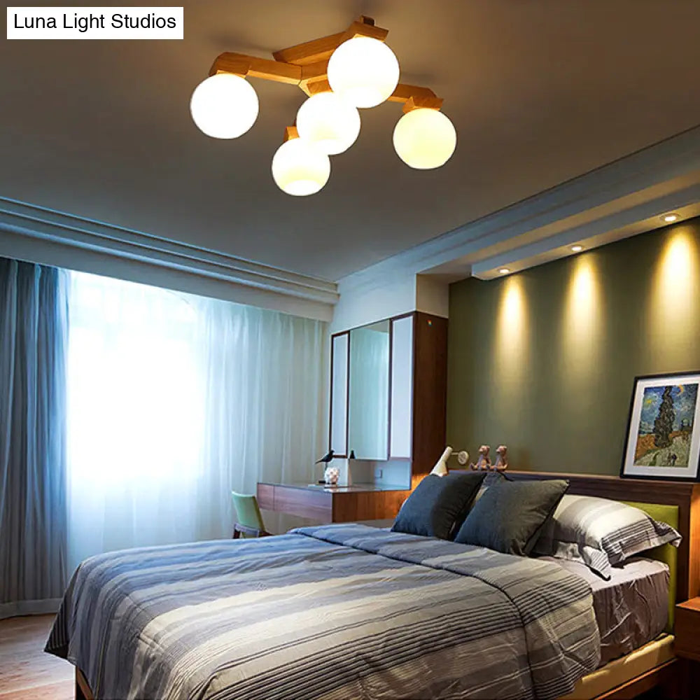 ديكوربايتس™ مصباح شبه مدمج من الزجاج الحليبي المعاصر مع ذراع تركيب خشبي - إضاءة فرعية شبه مدمجة 3/5/7 مصابيح (بيج)