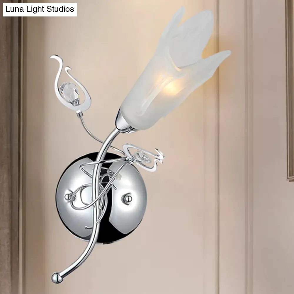 DecorBites™ مصباح حائطي عصري من الزجاج الأوبال بتلات باللون الكروم لوضعه بجانب السرير