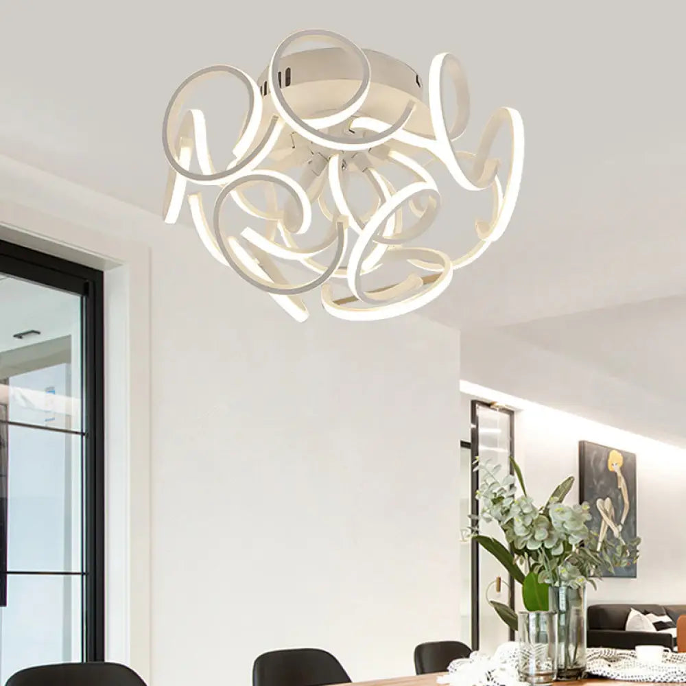 ديكوربايتس™ مصباح سقف LED شبه مسطح بتصميم موجة دوامية معاصرة مع 9/12 مصباحًا باللون الأبيض أو الضوء الدافئ